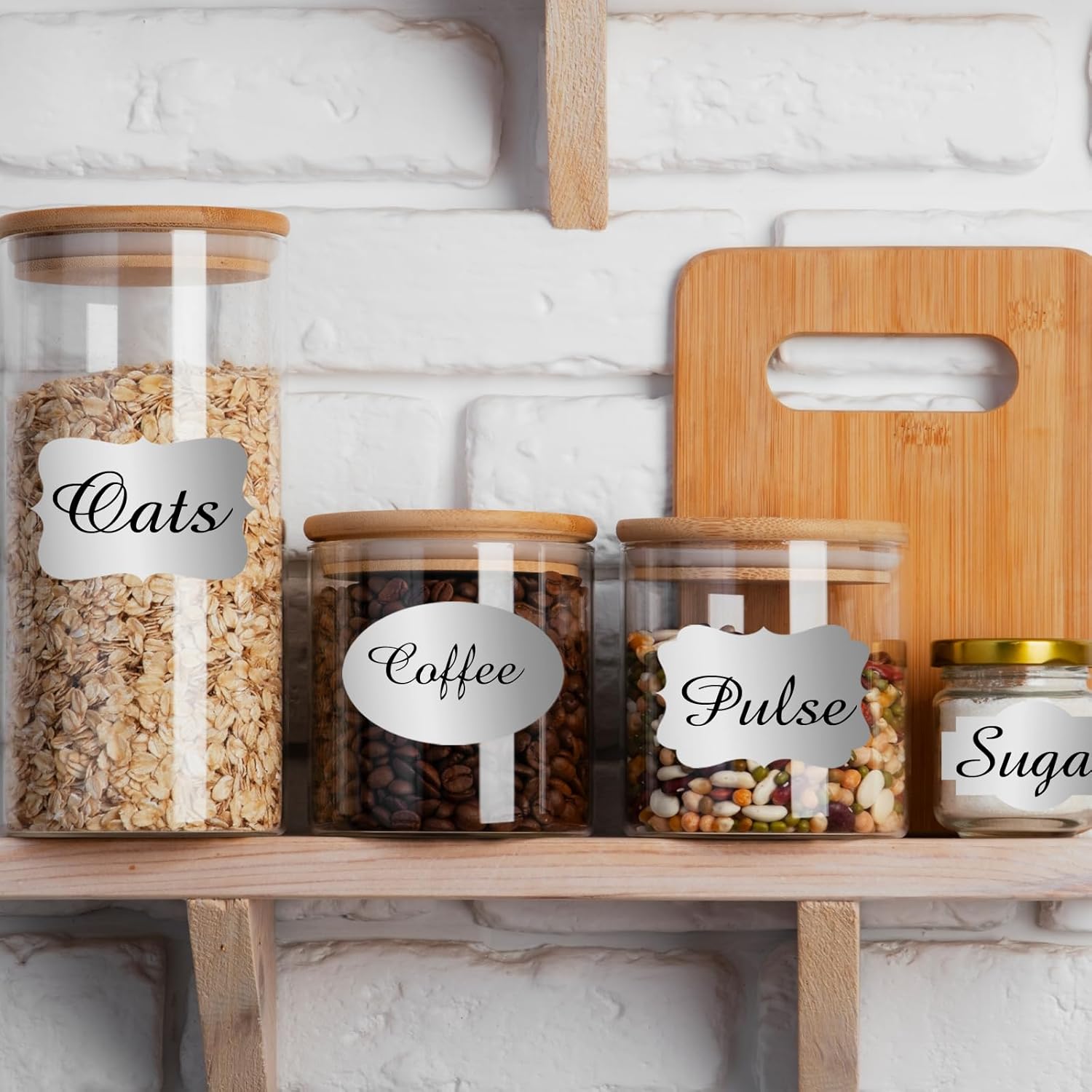 350 PCS Gift Tags Stickers, 2" x 1.2" Fancy Shape Stickers, Self-Adhesive, Handmade Bottle All-Purpose Jar Labels for Presents, Cosmetic Decoration Jars, Food Craft (Silver)