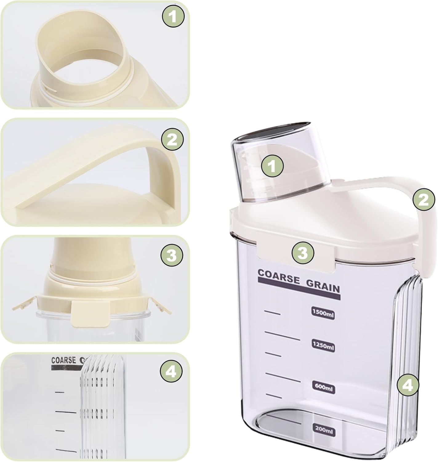 1 PCS Airtight Dry Food Container, Clear BPA-Free Plastic Cereal Containers Storage for Kitchen Pantry, Rice Cereal Flour Holder with Pouring Spout Measuring Cup, White, 51fl.oz/1.5L