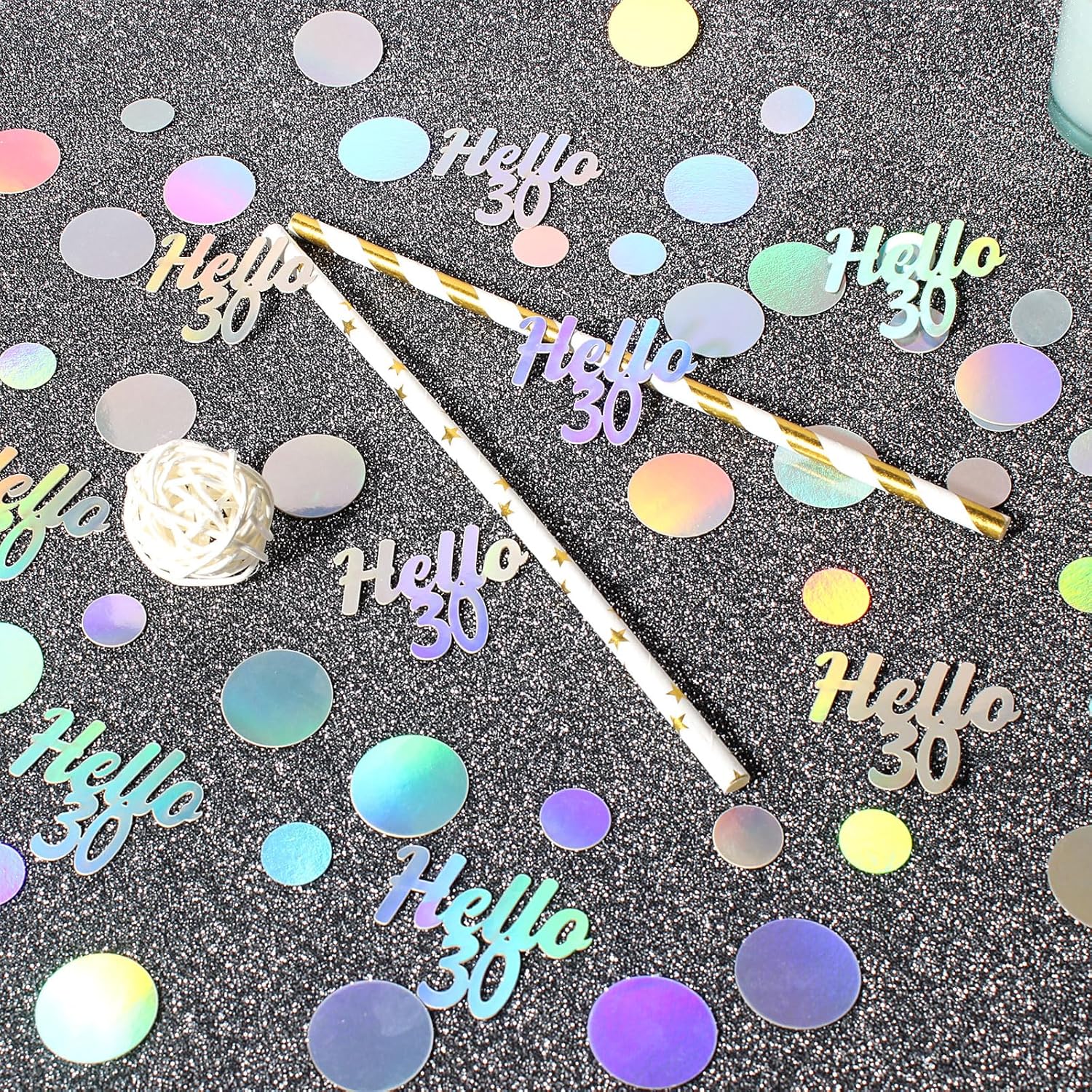Hello 30 Birthday Confetti for Tables Iridescent Circle Dots Happy 30th Birthday Party Decorations for Her Women Thirty Years Old Birthday Table Scatters Confetti Decor Supplies 300PC