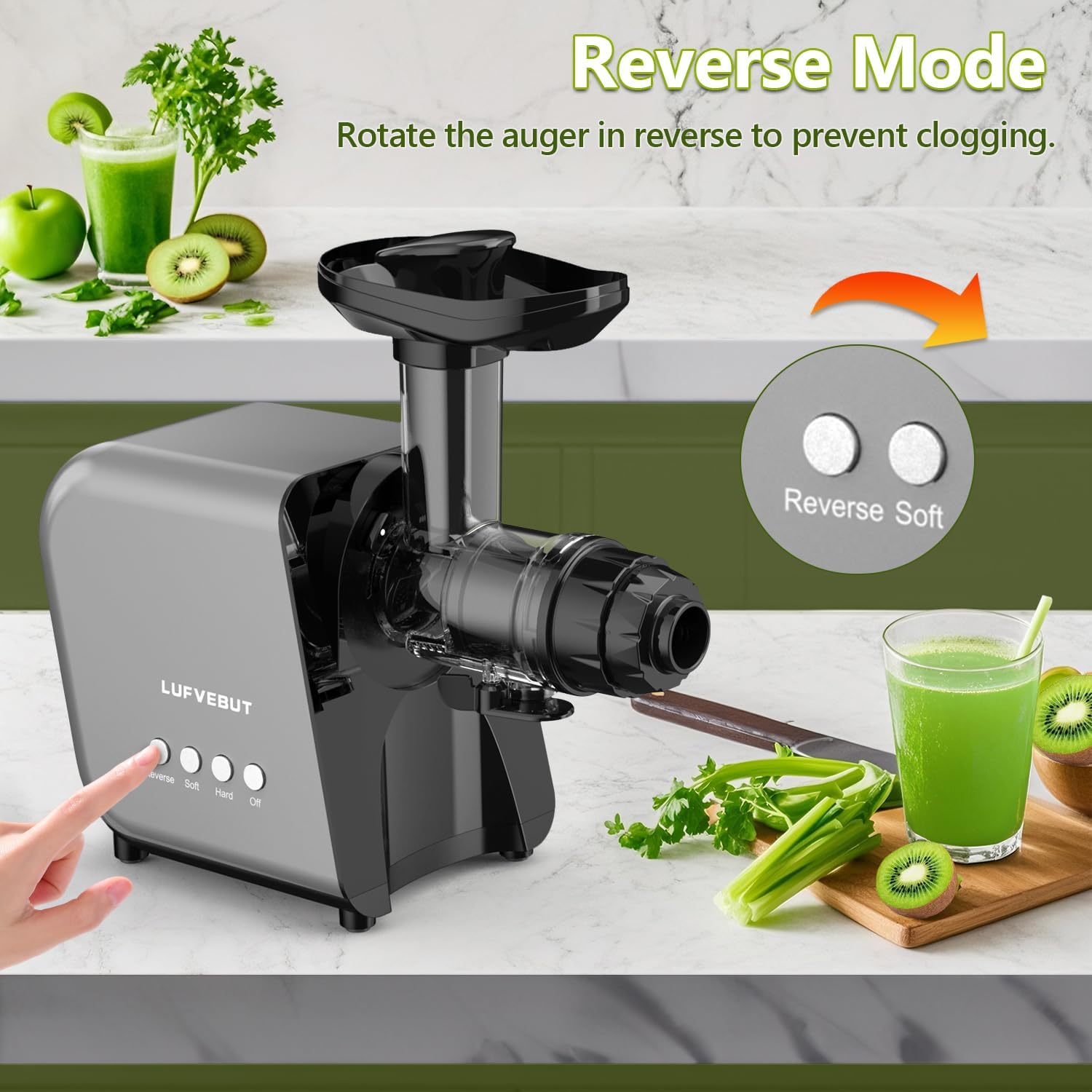 - Easy Adjustments: Features 18 level precision adjustments from coarse to extra fine, meet your needs. Reverse function - If clogged, turn off the juicer first, press Reverse button for 2-3s, the auger will rotate in the opposite direction, then press Start to continue.