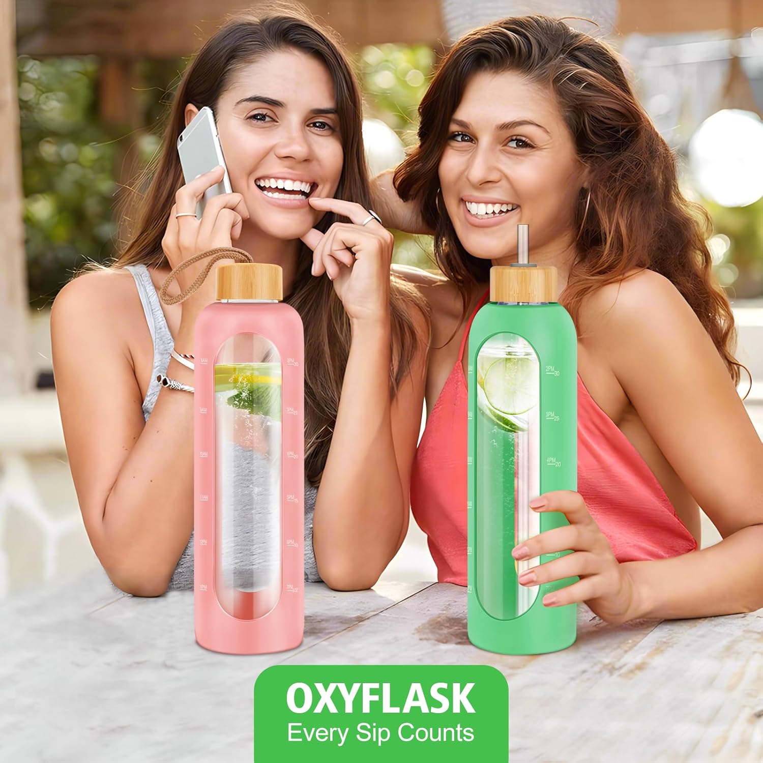 - DURABLE & SAFE BOROSILICATE GLASS: Made from premium borosilicate glass, this glass water bottle 32 oz is BPA-free, ensuring safe, pure hydration. The protective silicone sleeve and thickened base enhance durability, making it perfect for daily use and long-term reliability.