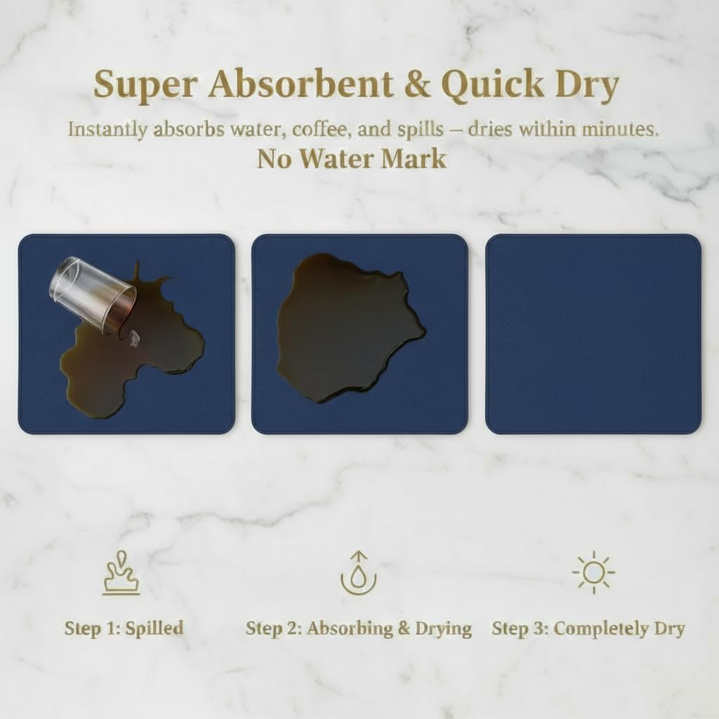 Dish Drying Mat Super Absorbent – 12" x 18" Coffee Mat for Countertops – Non-Slip Drying Mat for Kitchen Counter – Easy to Clean Water Absorbent Mat – Quick Dry Dish Drying Mats (Navy Blue)
