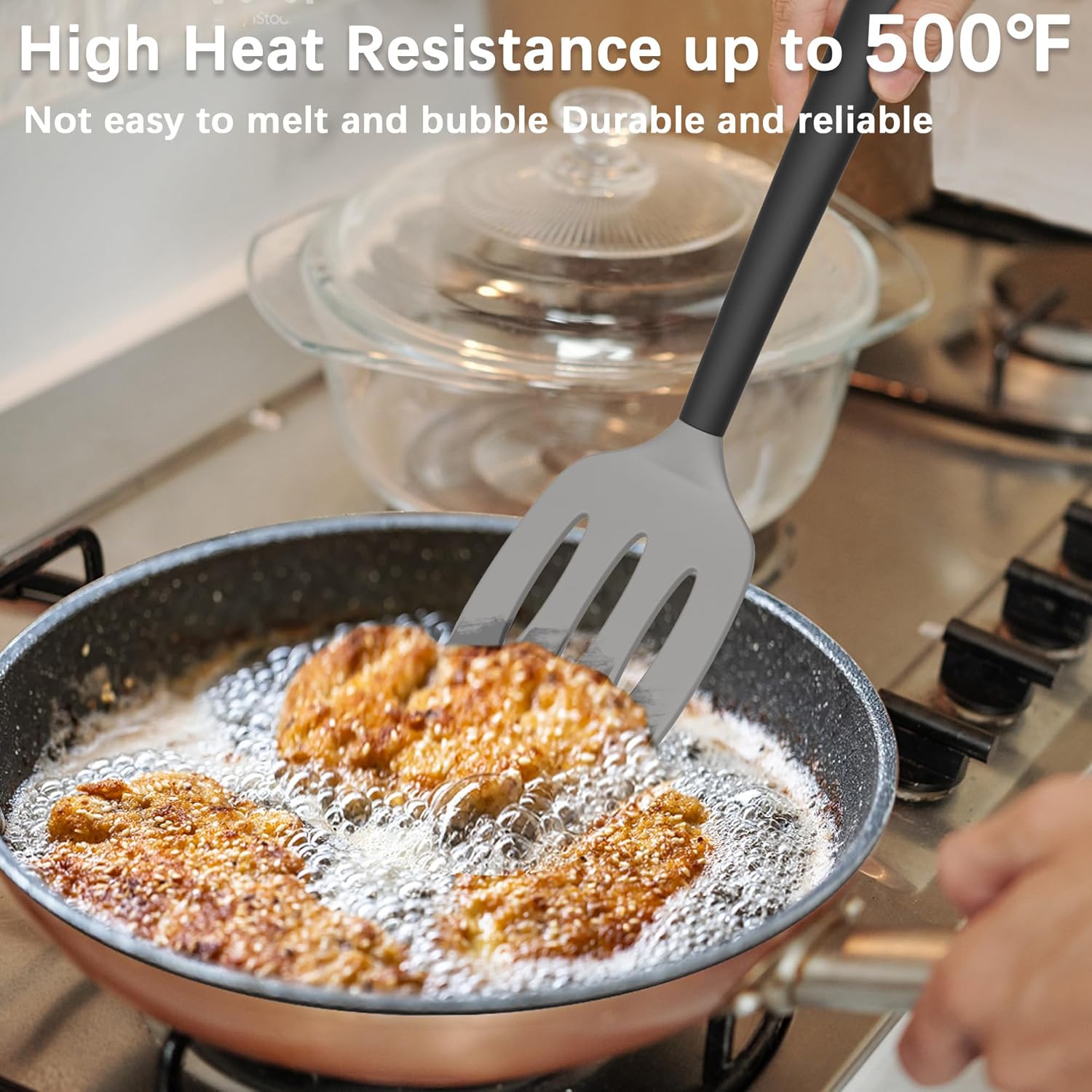 - [Sturdy Yet Flexible]: The kitchen spatula turner set features a reinforced nylon core, a silicone handle that makes the grip more comfortable, and the flexible head provides precise control, making flipping and stirring easier