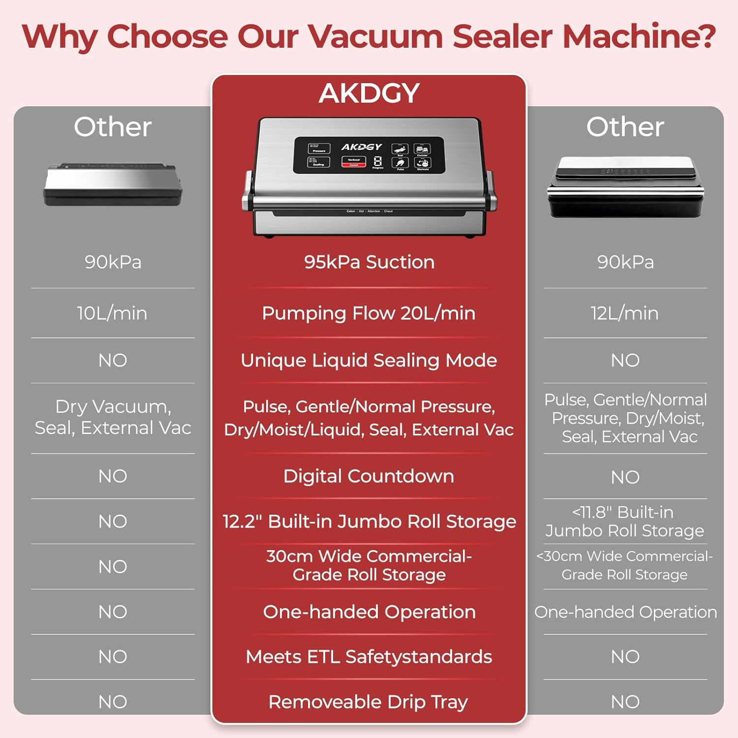 - Built-In Roll Storage and Bag Cutter: 12.2" built-in bag roll storage conveniently stores various vacuum seal bag rolls (≤30cm) neatly in the machine. 11.8" integrated bag cutter can easily customize the bag size according to your needs. It comes with an integrated vacuum hose. There is no need to install it separately. Food saver vacuum sealer machine stainless steel surface removable vacuum tank, easy to clean and maintain