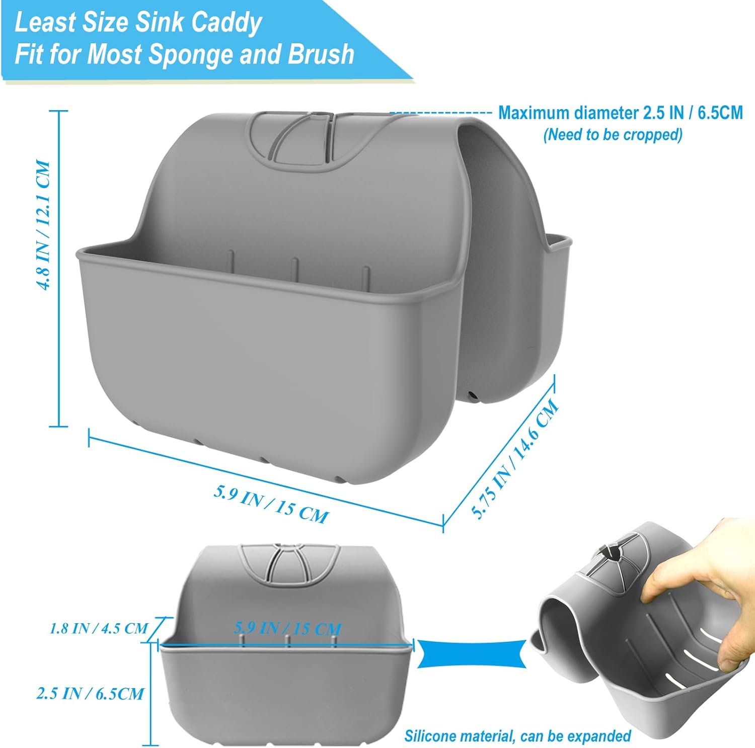 - 【Small Size Take Little Sink Space】 - The sponge holder take small sink space and will not affect daily sink functions and it's very soft and flexible. A single sponge rack size is 5.9"L x 2.5"H x 1.6"W, the max width up to 3.7"W