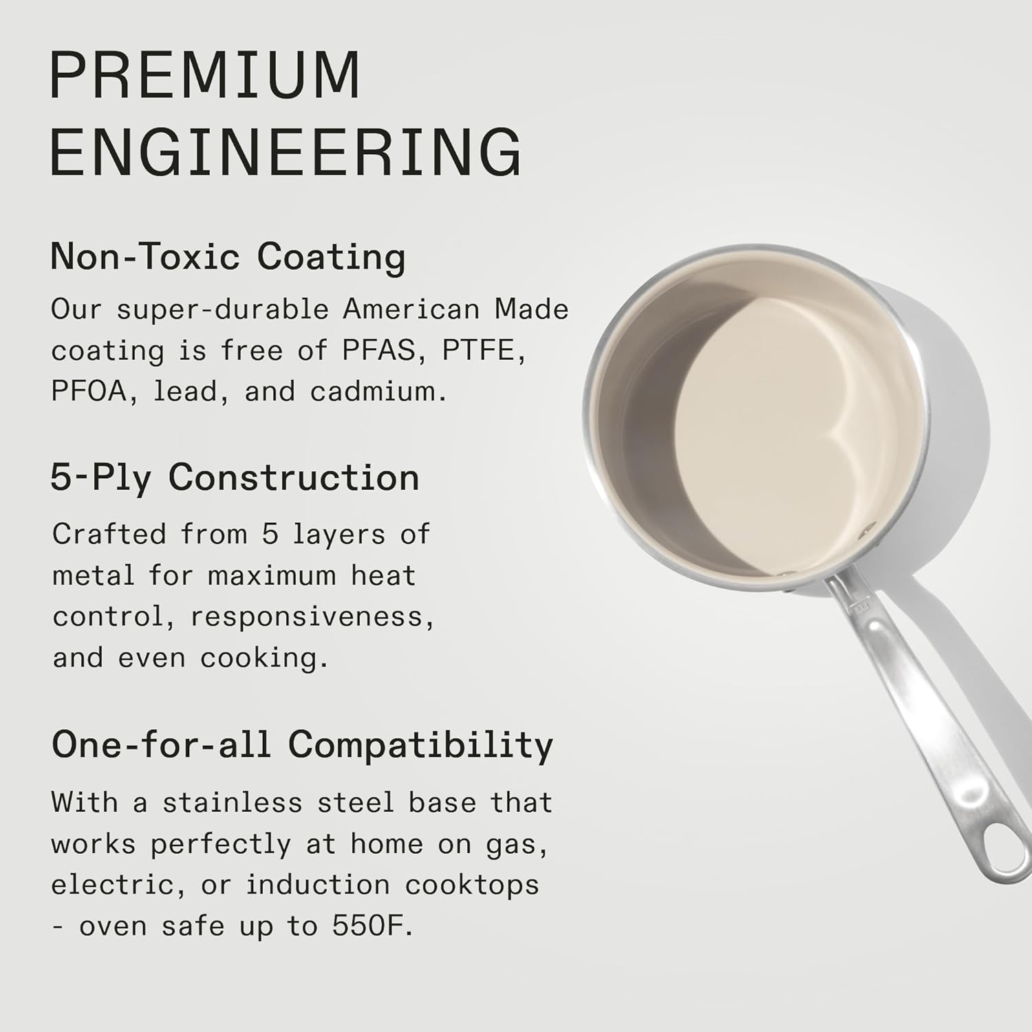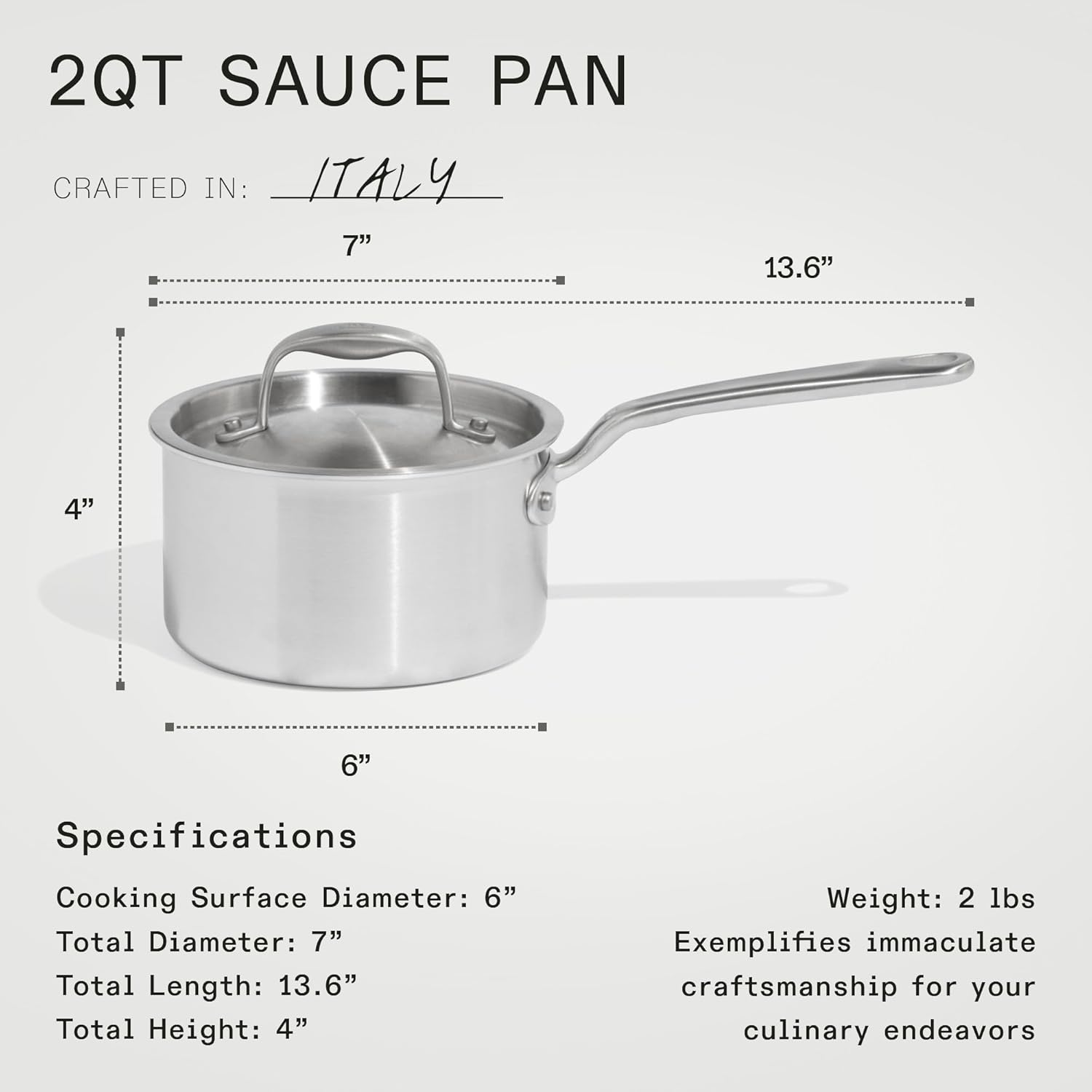 Made In Cookware - 2 QT Ceramic Non Stick Saucepan with Lid - 5-Ply Stainless Clad with Stay-Cool Handle - Professional Cookware - Crafted in Italy - Induction Compatible