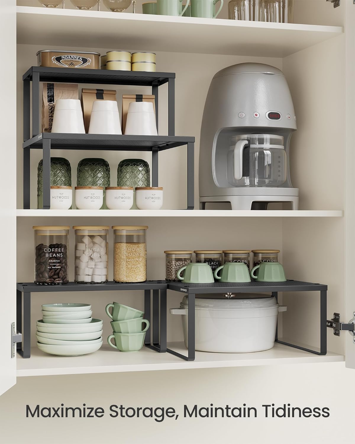 - [Maximize Your Storage] If you have a large cupboard but your items still have nowhere to go, try this set of 2 cabinet organizers—it takes full use of the vertical space and doubles your storage space