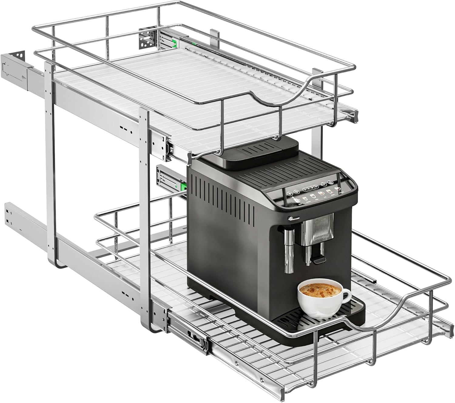 WelFurGeer 2-Tier Stainless Steel Pull Out Cabinet Organizer, Soft Close Damping Slides, Heavy Duty Chrome Plated Wire Basket with Shelf Liner, Perfect for Kitchen Cabinets, Pantry Storage, Under Sink