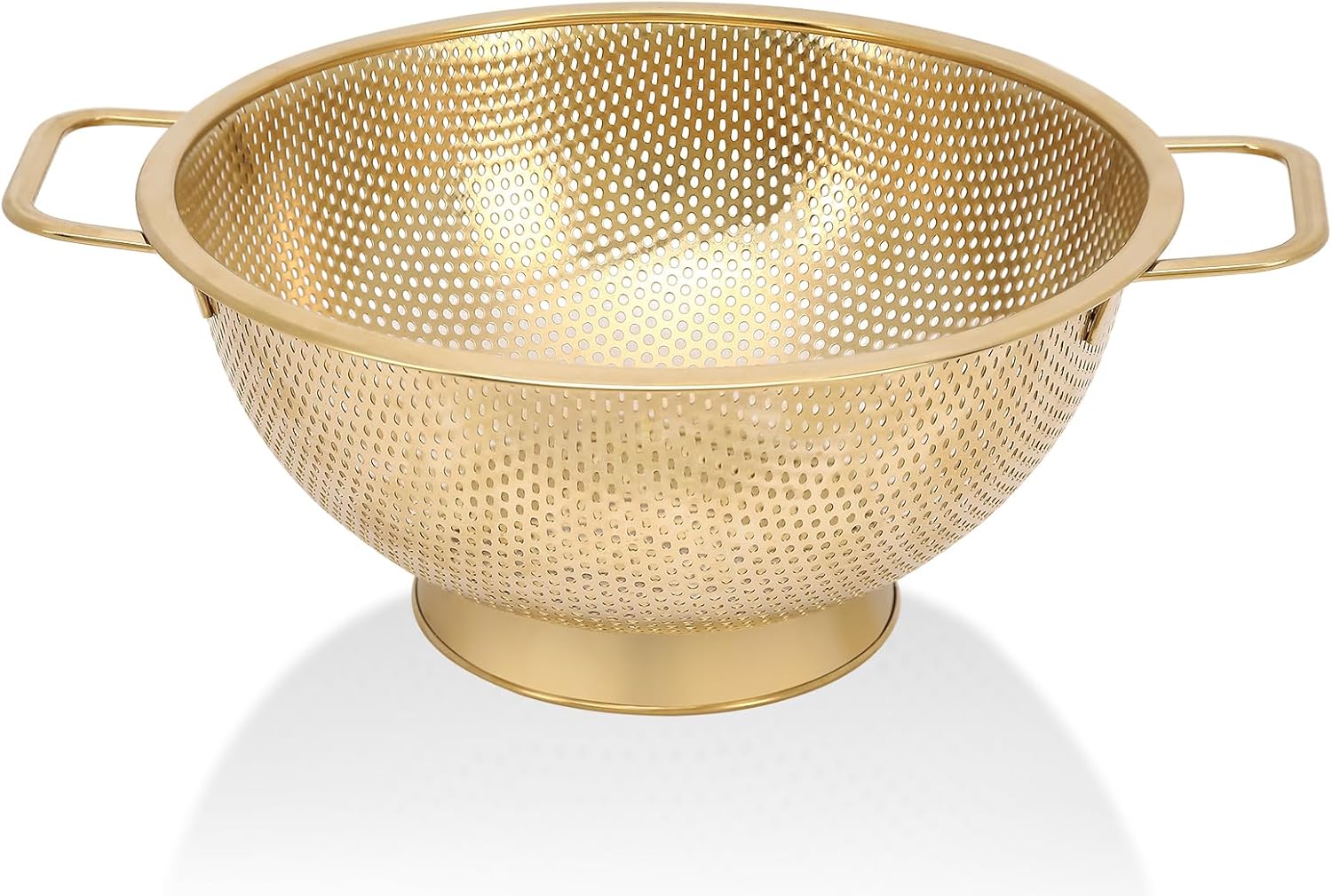 Gold Strainer for Kitchen, 3QT, Stainless Steel Colander with Handle for Fruits Vegetables Cooking Food, Dishwasher Safe