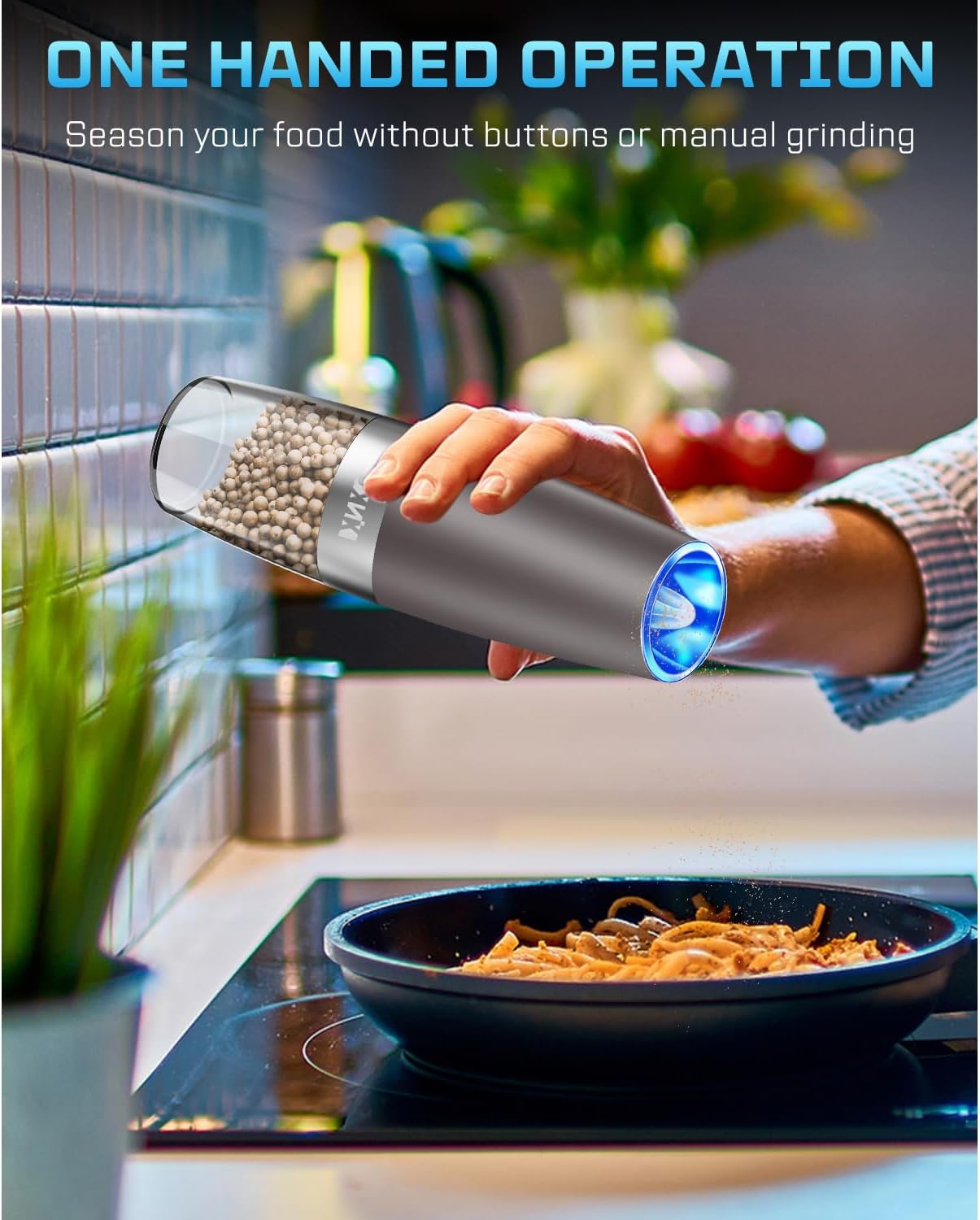 - 【Automatic Operation】Our Electric Pepper and Salt Grinder with Gravity sensor switch, you even needn’t to press a button, Simply flipped the grinder and you will have fresh ground spices, Convenient and funny. Battery powered, each grinder requires 6 AAA batteries (batteries not included, Please prepare batteries in advance).