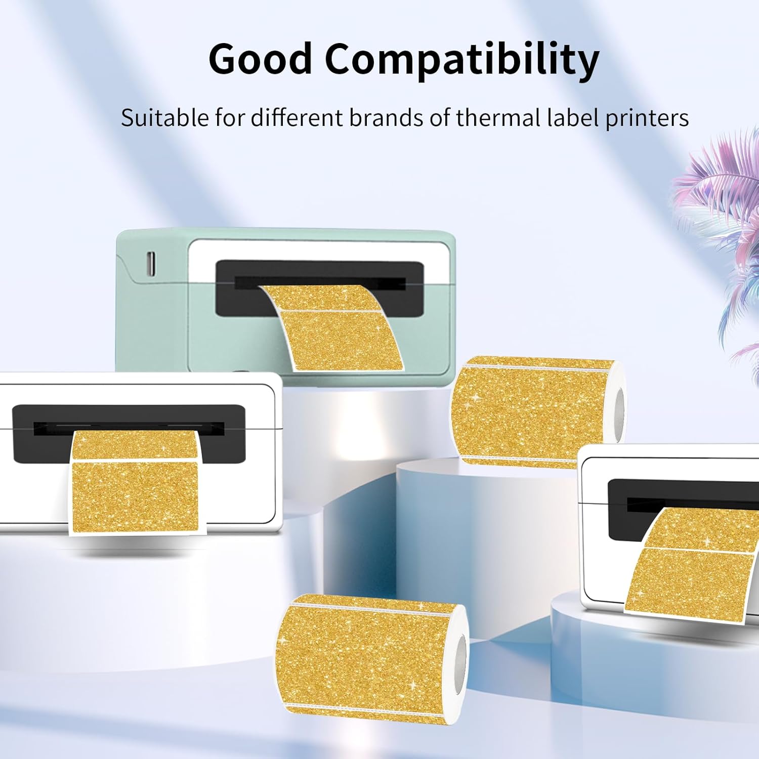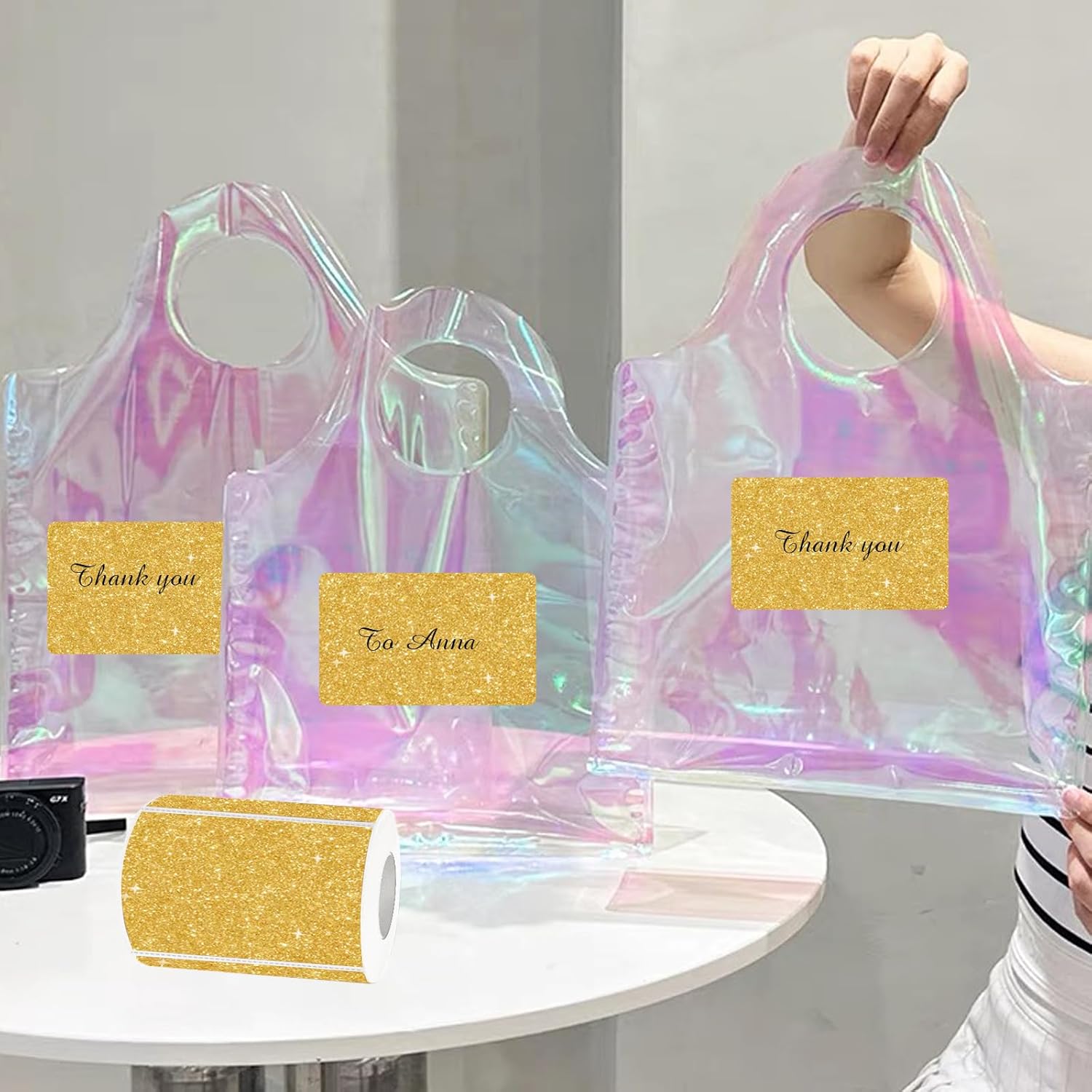 3x2 Inch Holographic Thermal Labels, Shiny Gold Thermal Sticker Labels, Rainbow Glitter Stickers for Price, Barcode, Mailing, Name, DIY Custom Logo Design, 200 pcs/1 Roll