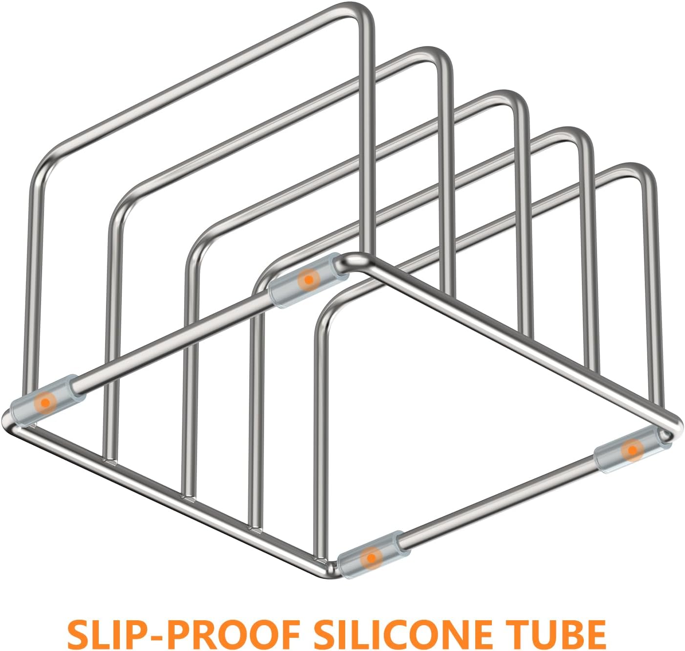 - 【Sturdy Structure】This cutting board rack is made of thick 304 stainless steel,very handy to put it on countertop and in cabinet to store cutting boards, helps save valuable countertop space in your kitchen, makes countertop neat and clean, it can last long time without the worrying to rust.