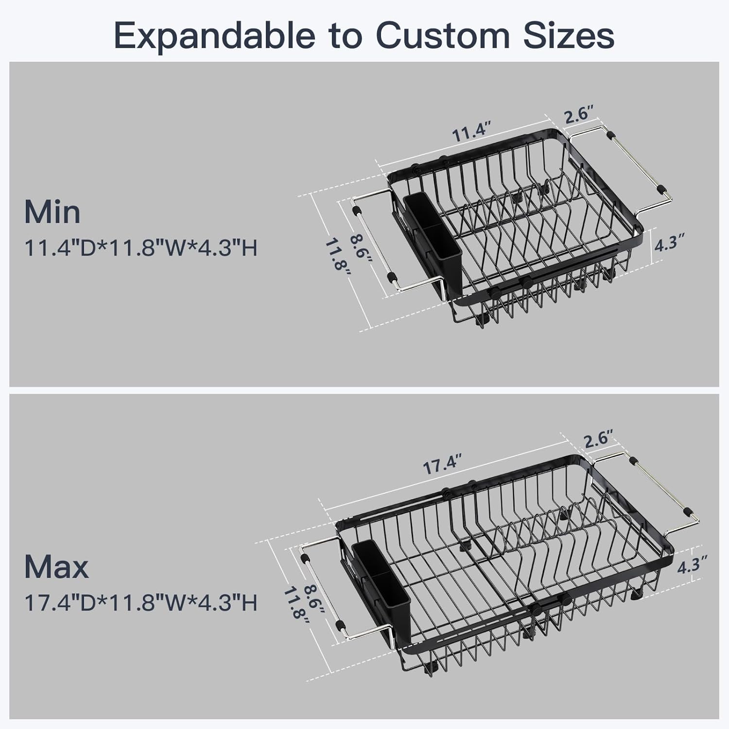 - 🔄 Expandable & Adaptable: Slide to customize this expandable dish drying rack for single/double sinks. Perfect space saving dish drying rack solution for tight spaces