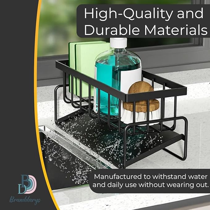 - [RUSTPROOF STAINLESS STEEL] – built from premium 304 stainless steel with a matte black coating, this sink caddy organizer resists corrosion, ensuring long-term durability in wet kitchen environments.