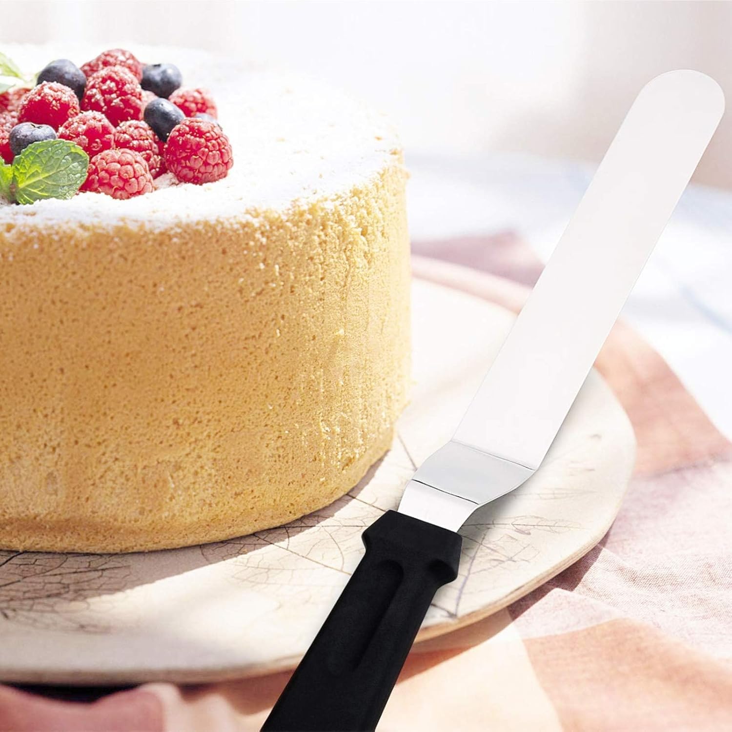 - 1. The Balance: Our offset spatula features a high-quality stainless-steel blade that strikes the perfect balance between rigidity and flexibility. It effortlessly glides across frosted cakes, making icing a breeze. Say goodbye to uneven icing!