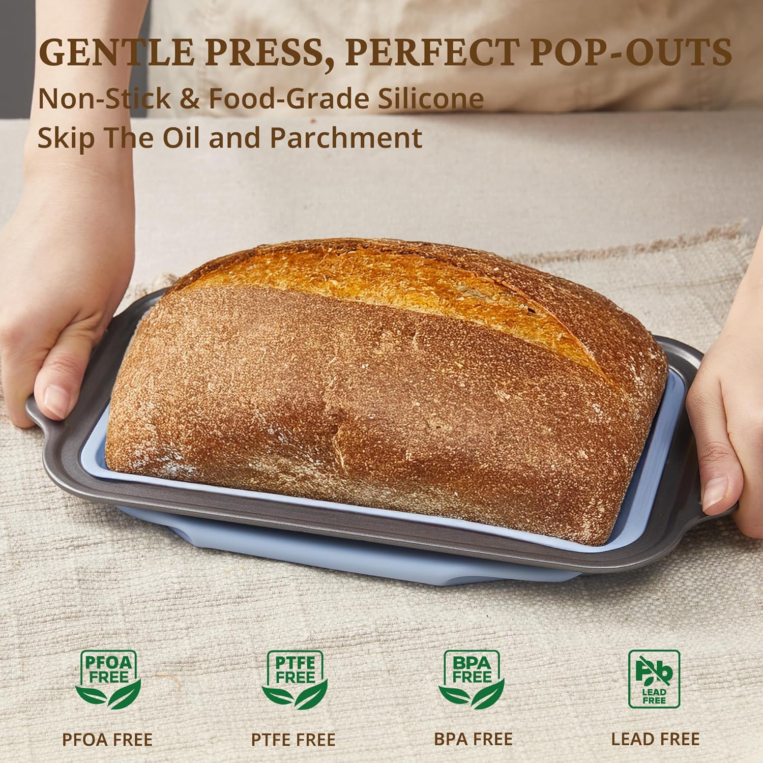 - Non-Toxic & Safe: Our silicone bread loaf pan is made from 100% food-grade, BPA-free silicone, meeting strict U.S. quality standards. It's a safe and healthy choice for your kitchen, one you can trust.