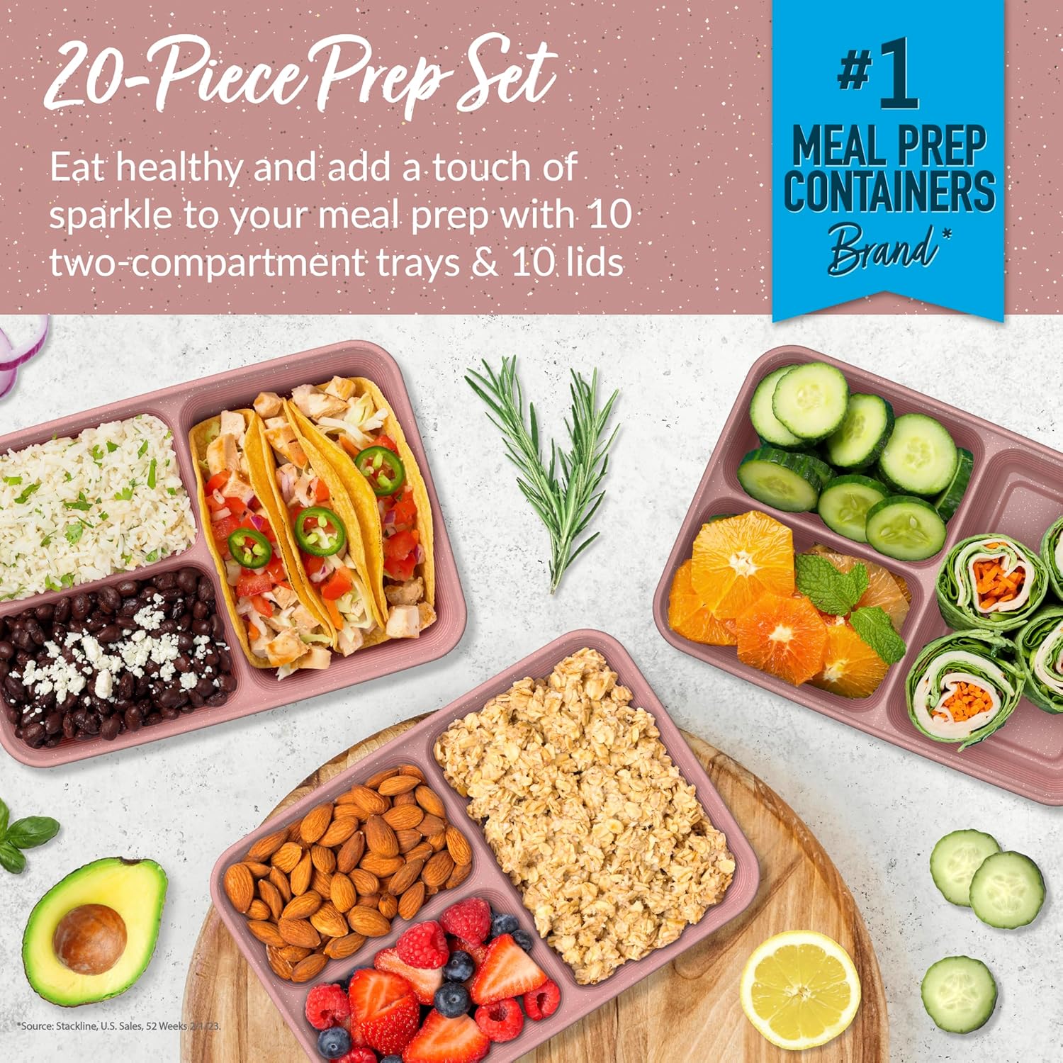 Bentgo 20-Piece Lightweight, Durable, Reusable BPA-Free 3-Compartment Containers - Microwave, Freezer, Dishwasher Safe (Garden Edition - Rosette Glitter)