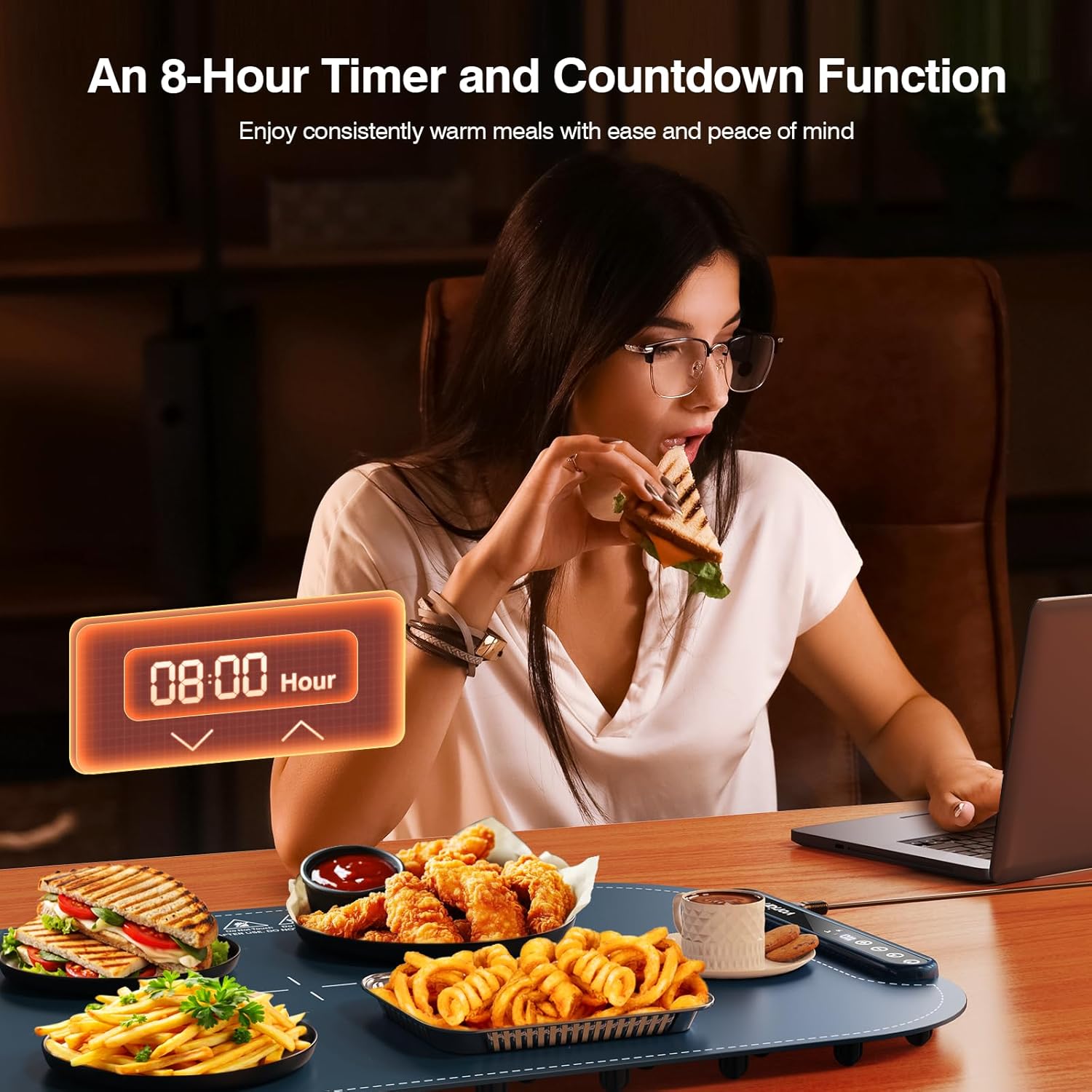 - 【8 Adjustable Temperature Levels (40–110°C)】Enjoy quick heating in just 10 seconds with 8 temperature settings to suit different foods. Whether it’s pizza, soup, or side dishes, this electric warming mat keeps everything deliciously warm for longer.