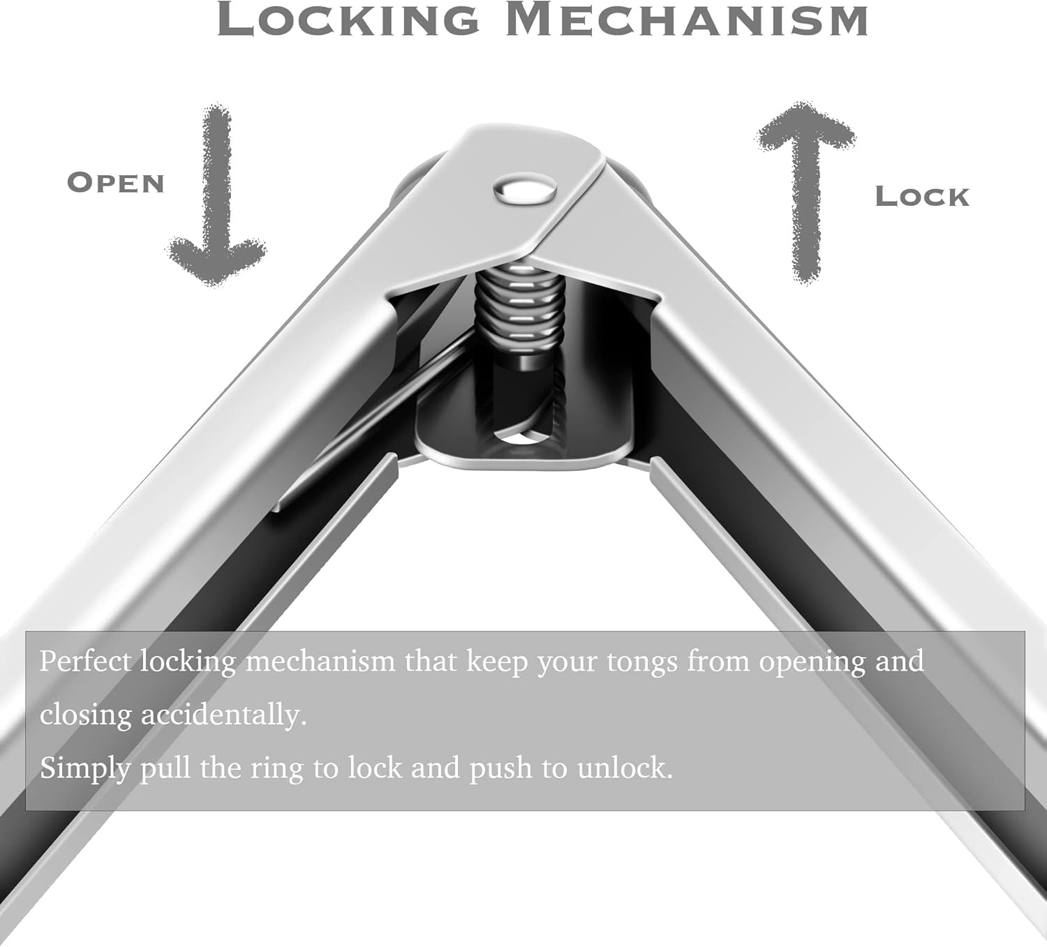 2 Pack Grey Kitchen Tongs, Premium Silicone BPA Free Non-Stick Stainless Steel BBQ Cooking Grilling Locking Food Tongs, 9-Inch & 12-Inch