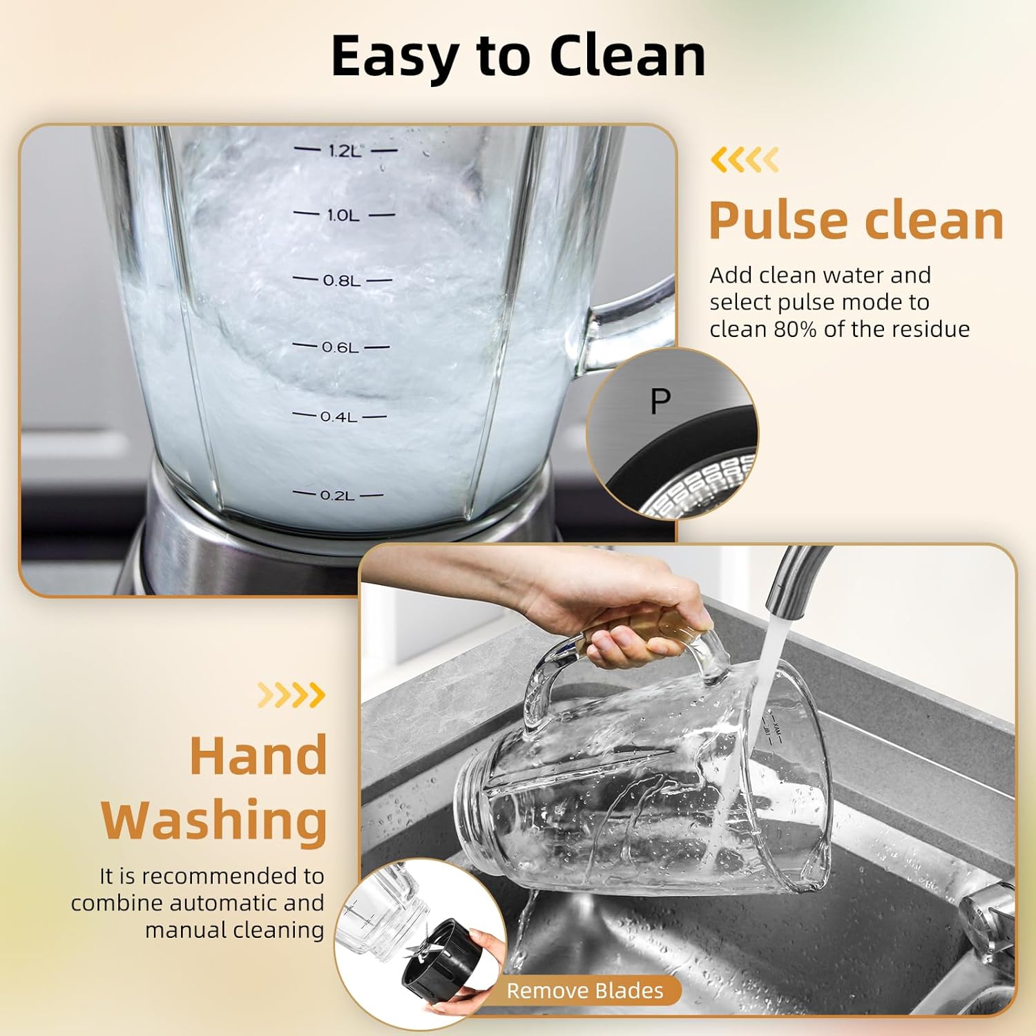- CONVENIENCE AND EASY CLEANING: This blender is designed for convenience, featuring a small, easy-to-remove measuring cap for quick ingredient addition. It’s simple to clean—just rinse with water or use the automatic cleaning function