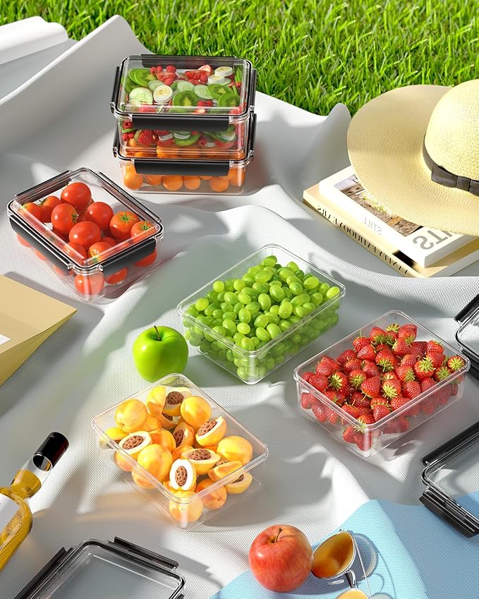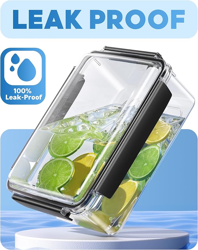 - Leak-Proof & Keep Fresh: Our plastic containers with lids are designed with high-quality silicone seals and 4 removable snaps to ensure leak proof. Don't worry about food spills or odors seeping into your fridge anymore. It's great for storing leftovers, fruits, vegetables, cooked meals, dry food and sauce.