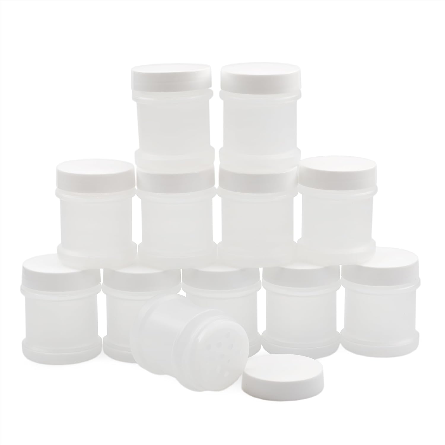 Cornucopia Brands Mini Plastic Spice Jars w/Sifters (12-Pack, White); 2 Tablespoon Capacity (1 Fluid Ounce) Spice Bottles for Travel, Glitter, Gifts, Favors