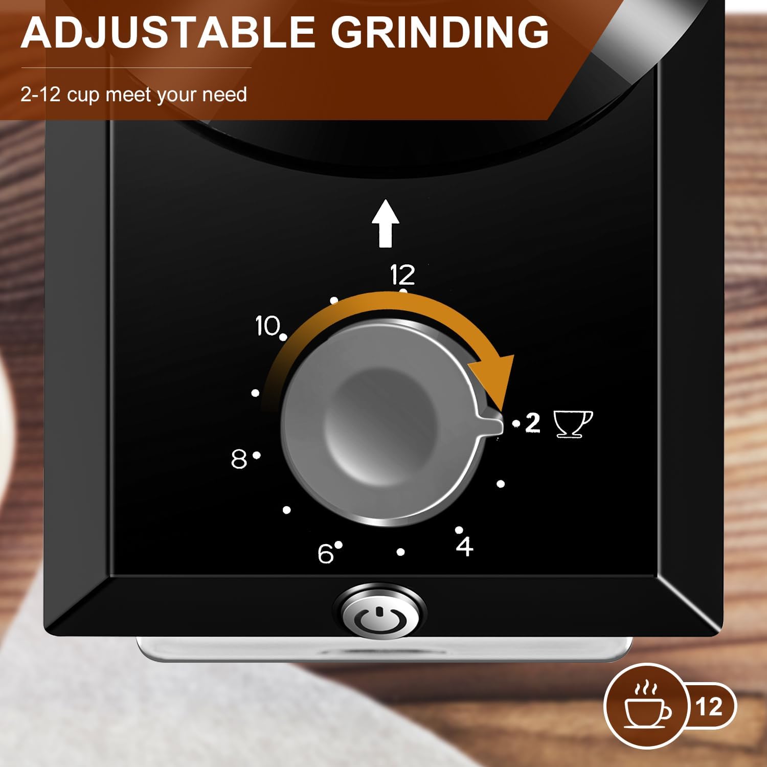 - 【Customizable for 2-12 Cups】This coffee grinder has an on-demand grinding function. According to the amount of coffee grinding you choose, from 2-12 cups, automatically grind the exact amount of coffee grounds for you.