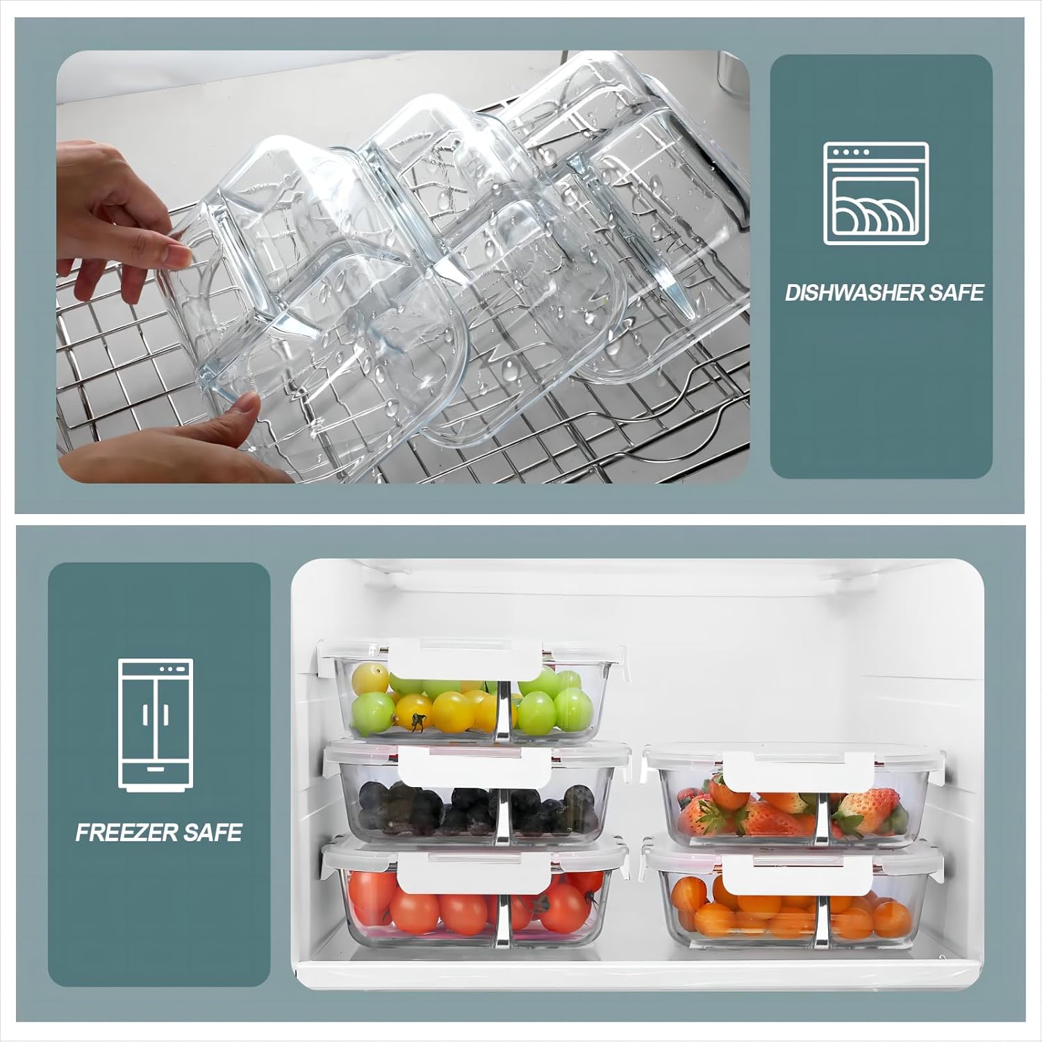 - HIGH QUALITY GLASS: Made from premium borosilicate glass, our meal prep containers are freezer, microwave and oven safe. The sturdy glass wonβt stain, warp, or absorb odors, providing durability for storing and reheating your meals. Note: Please remove the lid before heating.