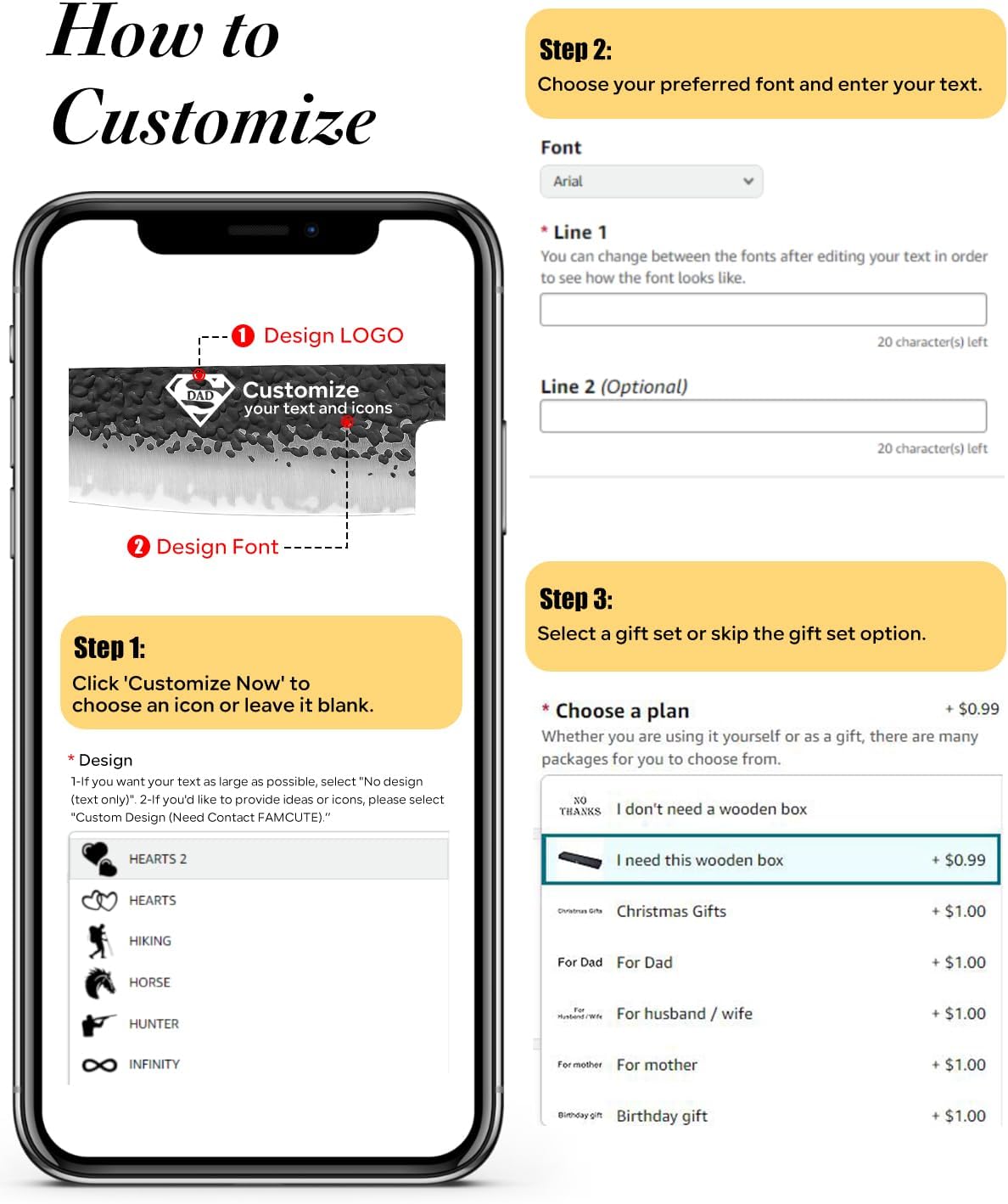 - Personalized: Customize this high-quality japanese chefs knife according to your preferences and needs, premium wooden box and various card options available. Making it a meaningful personalized gift suitable for any occasion