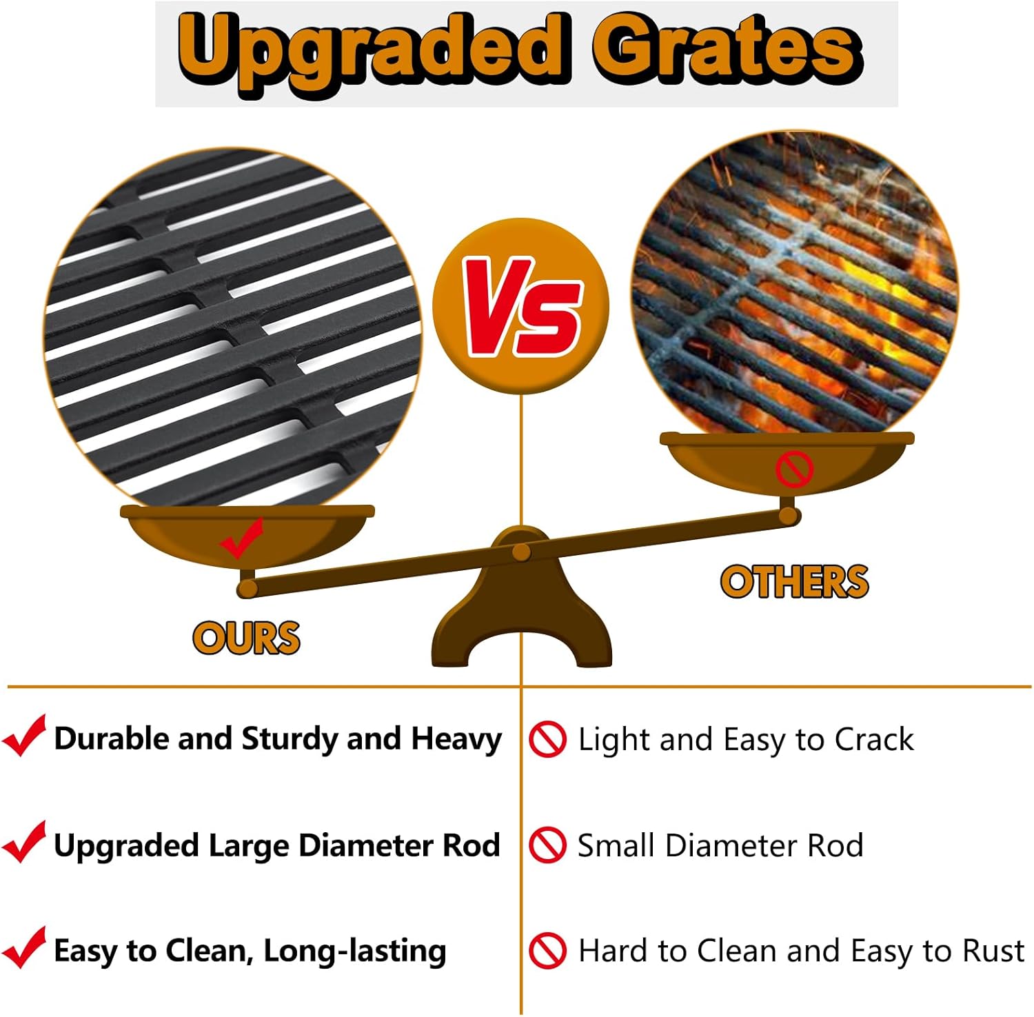 - 【Heat Transfer Evenly】 The weber spirit parts provide good heat retention, excellent heat transfer, even cooking temperature and bold sear marks, weber spirit replacement parts help to increases the smokiness and improves the taste of grilled food, durable and sturdy without distorting or degrading over time
