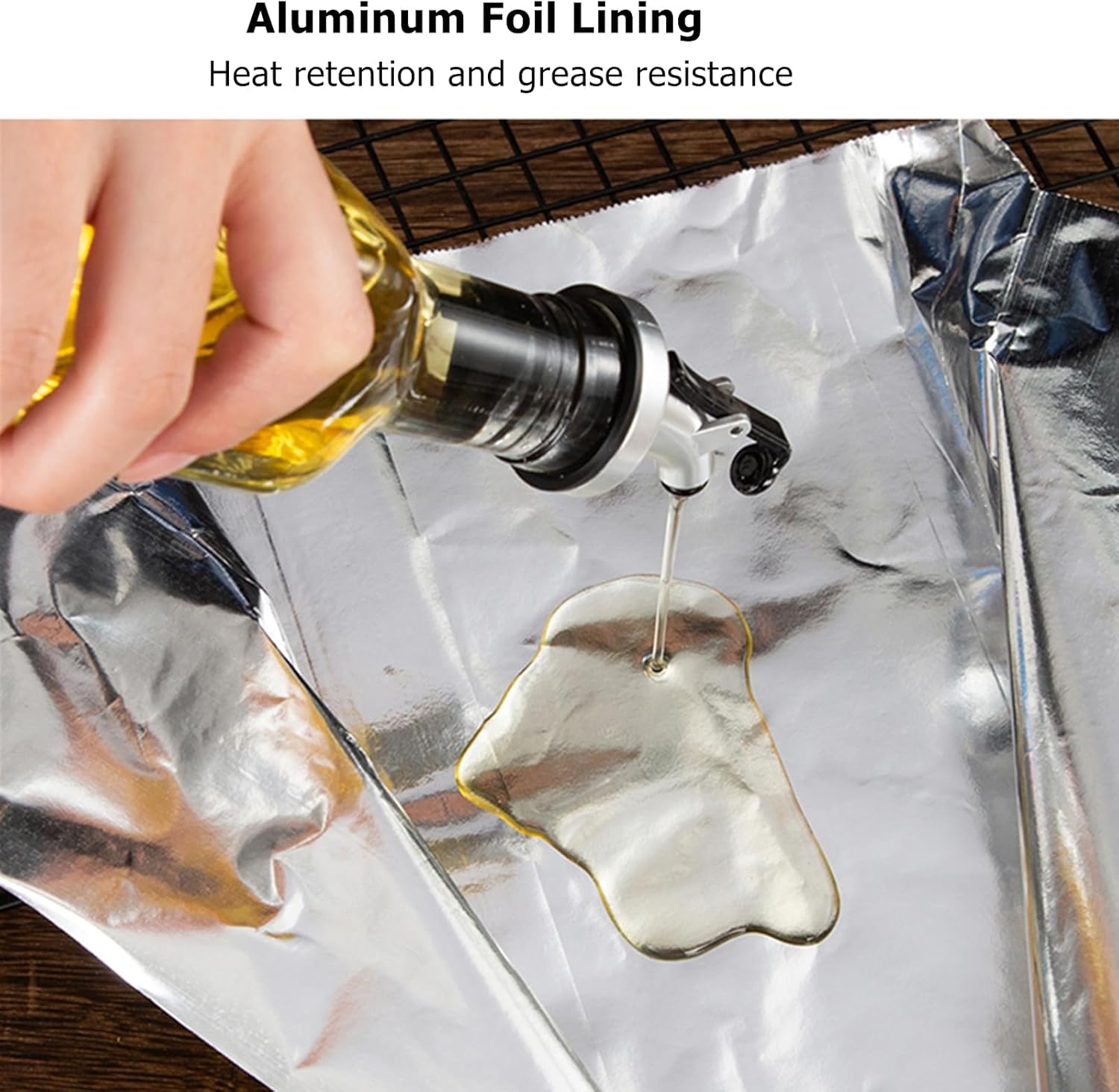 - Comes with 150 pack insulated foil sandwich bag. Each aluminum foil bag measures approximately 6.3”L x 1.5”W x 10”H, can hold up to 4 pounds. A sufficient quantity and perfect size can accommodate hot and cold foods for transport