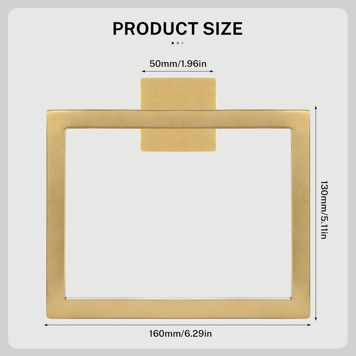 Brushed Gold Towel Ring,Square Hand Towel Holder,Towel Hanger, Bathroom Hardware Accessories,SUS 304 Stainless Steel Wall-Mounted