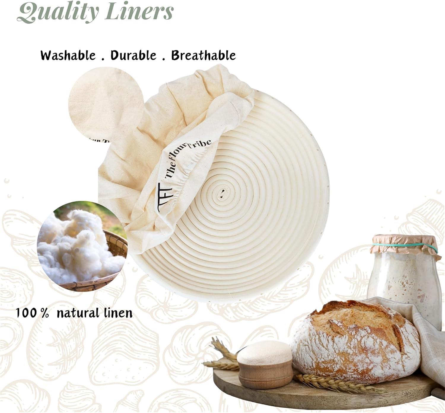 - CREATE ARTISANAL BREAD AT HOME: Master the art of sourdough making with The Flour Tribe's high quality bread proofing baskets and liners to create professional looking and well proofed bread!