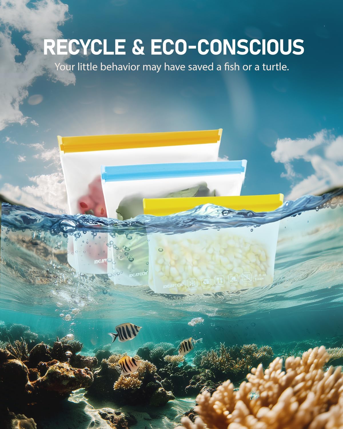 - Dishwasher Safe & Easy to Clean:IDEATECH reusable silicone bags is easy to clean and dry, Simply turn the reusable bag inside out and put it in the dishwasher for easy cleaning then put it on the top rack of the dishwasher and theyβre good as new when they come out. But please skip high-temperature functions such as the dishwasher's drying to extend the lifespan of these food bags.