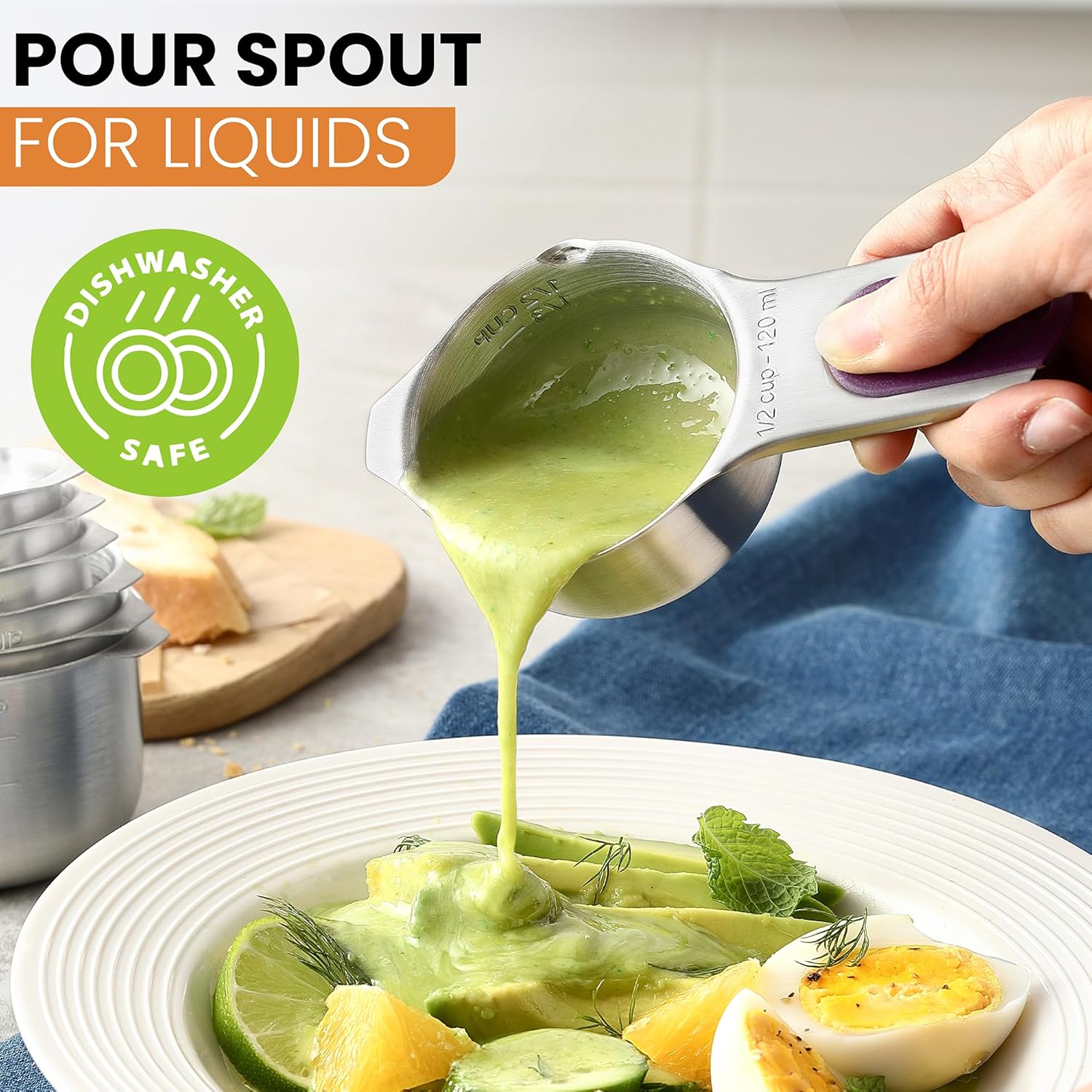 Spring Chef Magnetic Stainless Steel Measuring Cups, Patented, Kitchen Tools with Easy to Read Markings for Measuring Dry or Liquid Ingredients, Set of 7, Multicolor