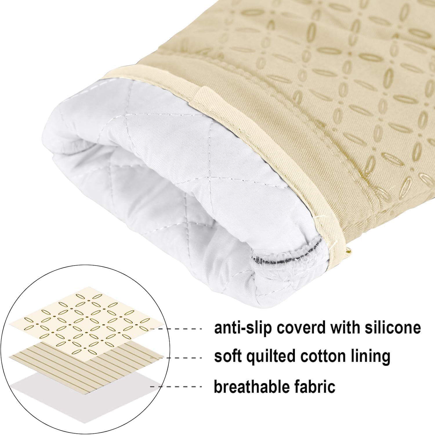 KEGOUU Oven Mitts and Pot Holders 6pcs Set, Kitchen Oven Glove High Heat Resistant 500 Degree Extra Long Oven Mitts and Potholder with Non-Slip Silicone Surface for Cooking (Beige)