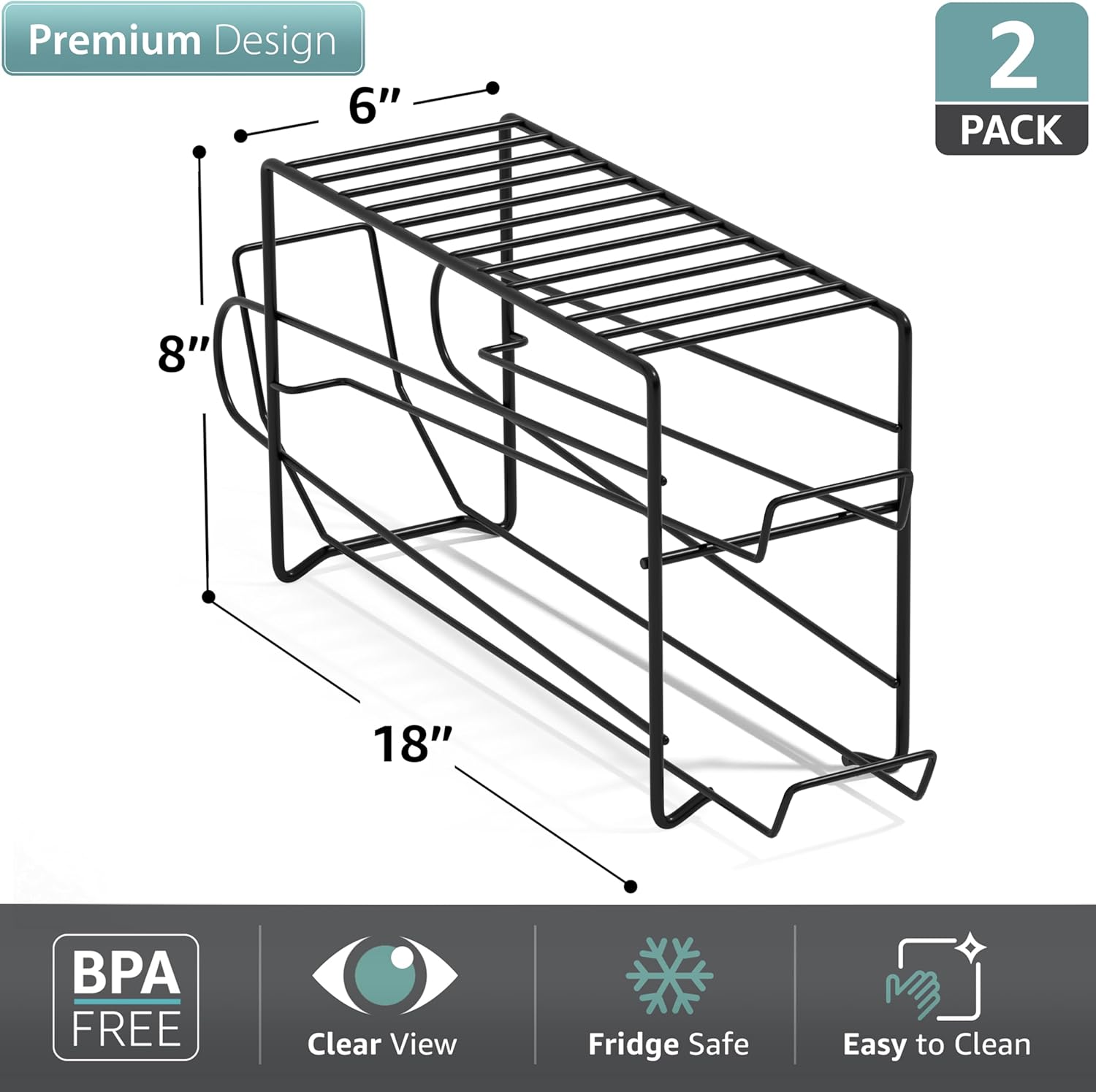 - Durable and Refined Design: Measuring approximately 18” L x 6” W x 8” H, this soda can holder for refrigerator is made from durable metal.