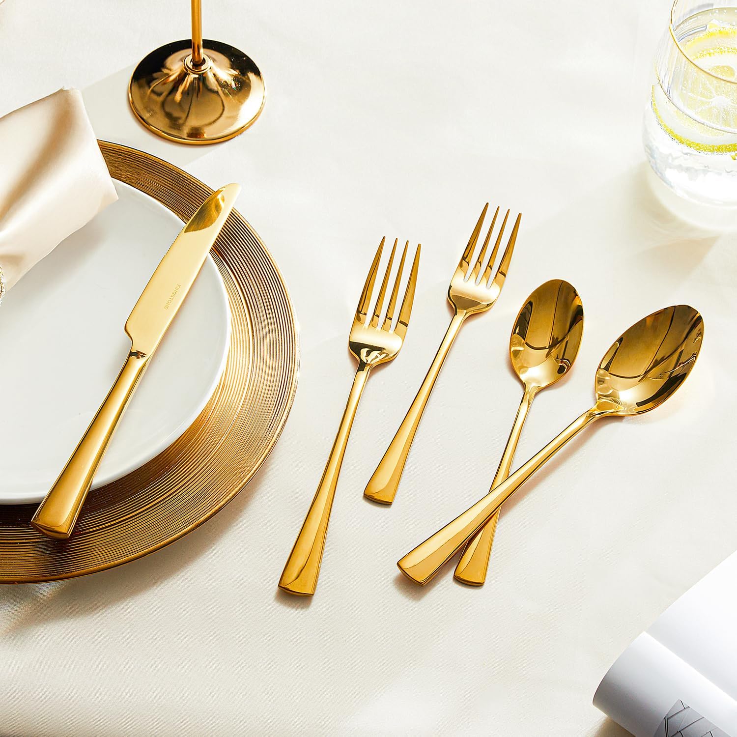 KINGSTONE Silverware Set for 12, 60-Piece Forged 18/10 Stainless Steel Flatware Set, Mirror Finish Cutlery Set Dishwasher Safe for Home, Restaurant, Wedding, Party, Gold