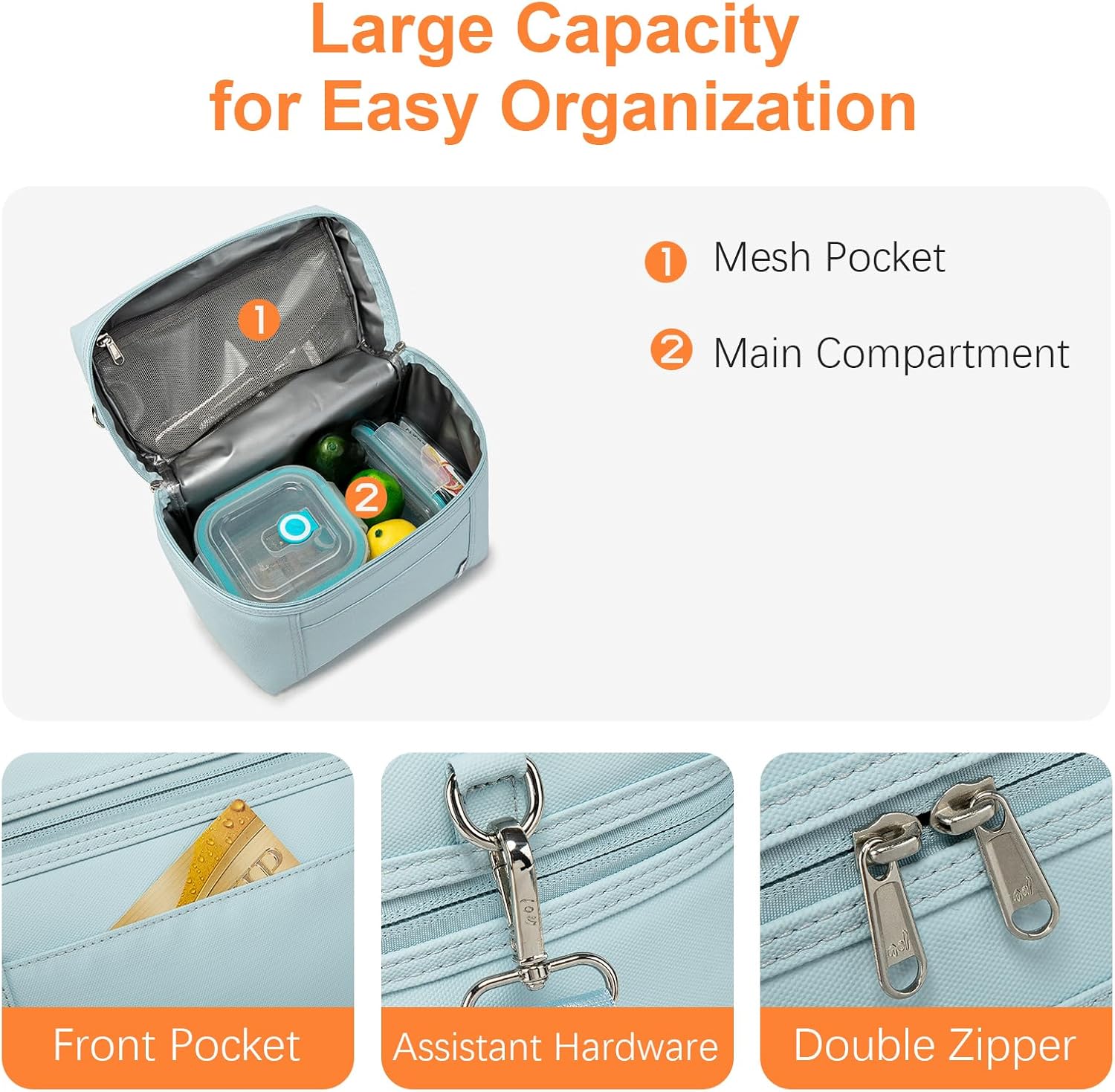 NOL Natural Organic Lifestyle Insulated Lunch Bags for Women Cooler Bag Lightweight Nylon Waterproof Lunch Box For Work (Small, Light blue)