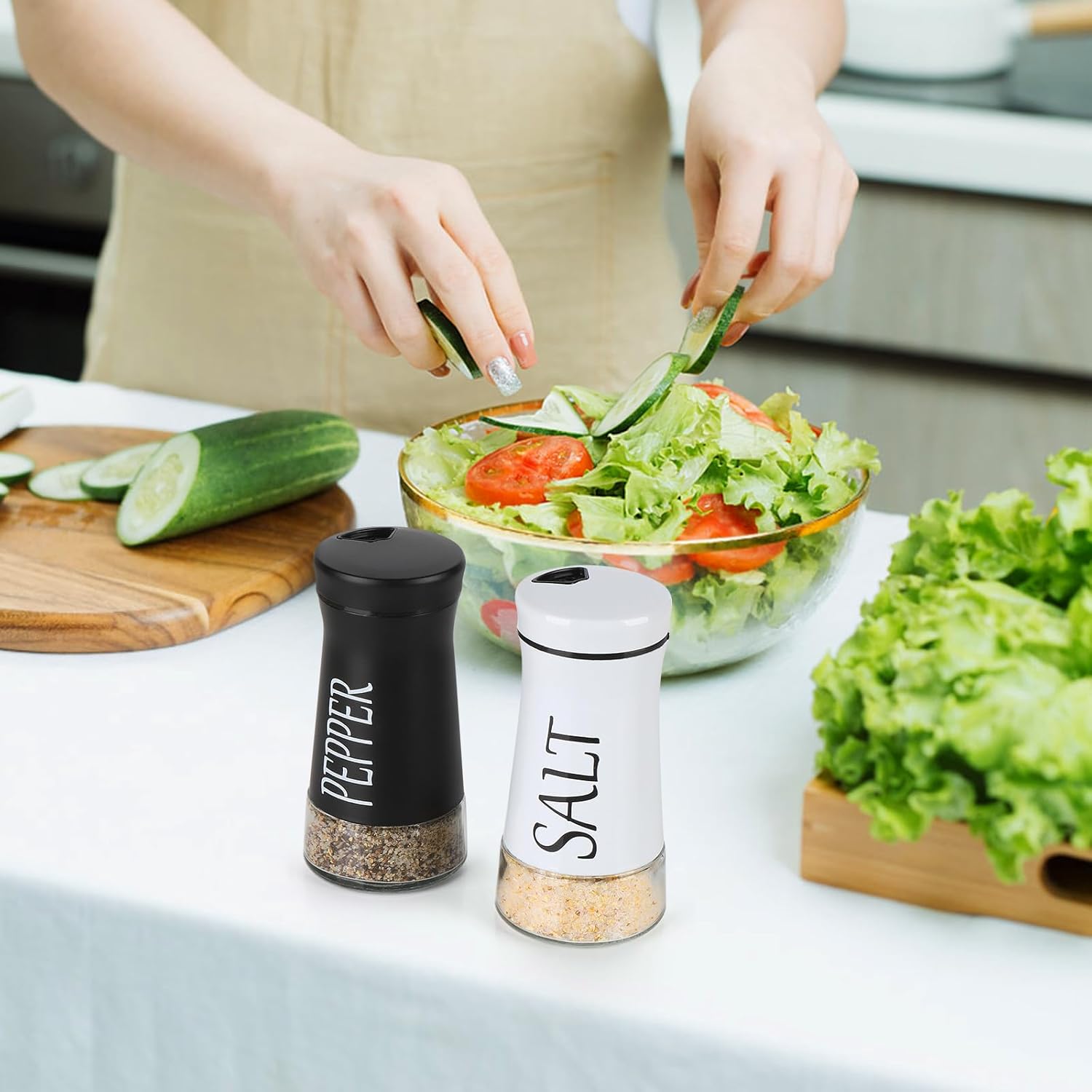 - High-Quality: These salt and pepper shakers are made of lead-free glass and premium stainless steel. Very suitable for storing seasonings such as salt, pepper, cinnamon.