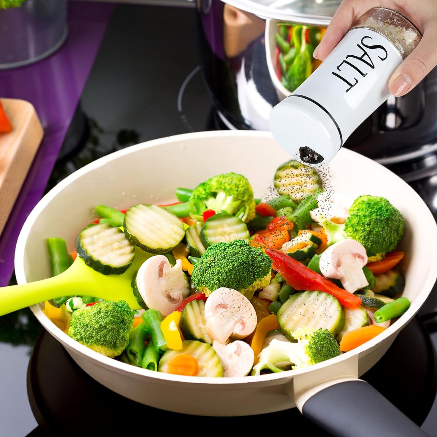 - Convenient Visual Design:The container is labeled with salt or pepper text, so even at a glance it's easy to tell which is which. And the visible glass bottle bottom design allows you to know when to refill.