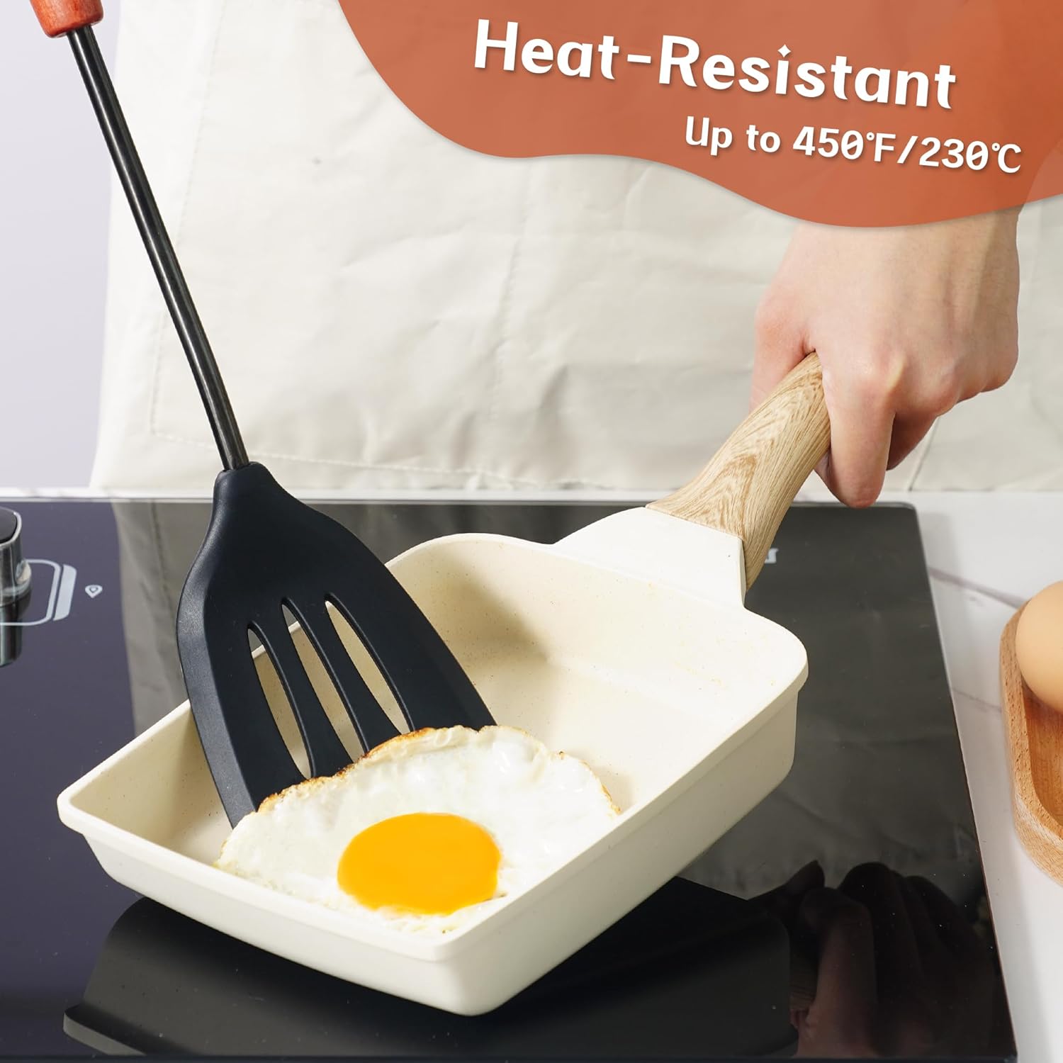- Easy to clean silicone spatula : Black silicone will not leave food grease ; round hanging hole also makes it easy to dry and hang