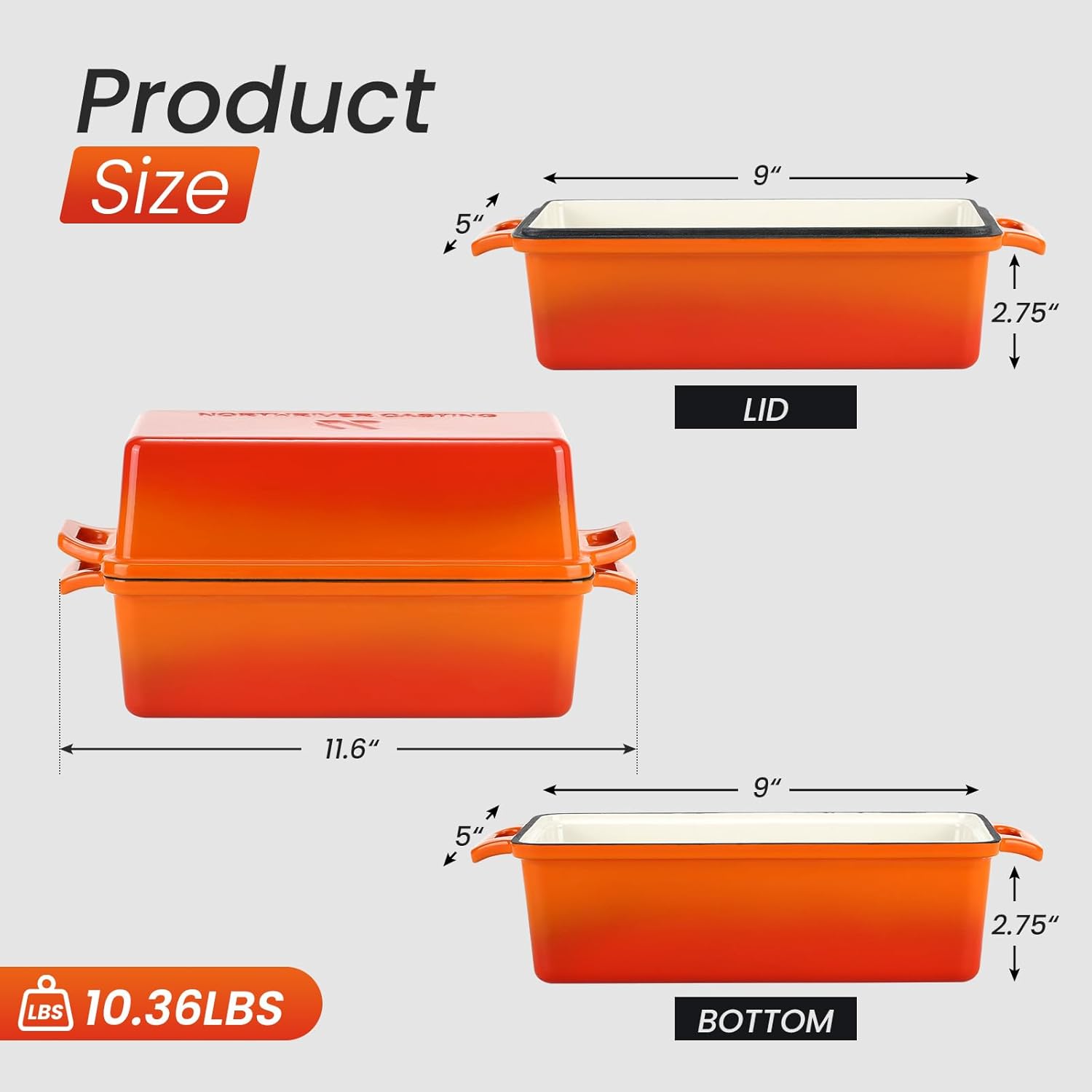 - 【DURABLE IN USE】: Northriver Casting bread loaf pans set is fully made of high grade cast iron, Oven Safe up to 500°F, no need to worry about deformation or harmful coating peeling off. Our cast iron cookware set is suitable for all kitchen cooktops, oven, electric stove, blackstone and induction cooktops.