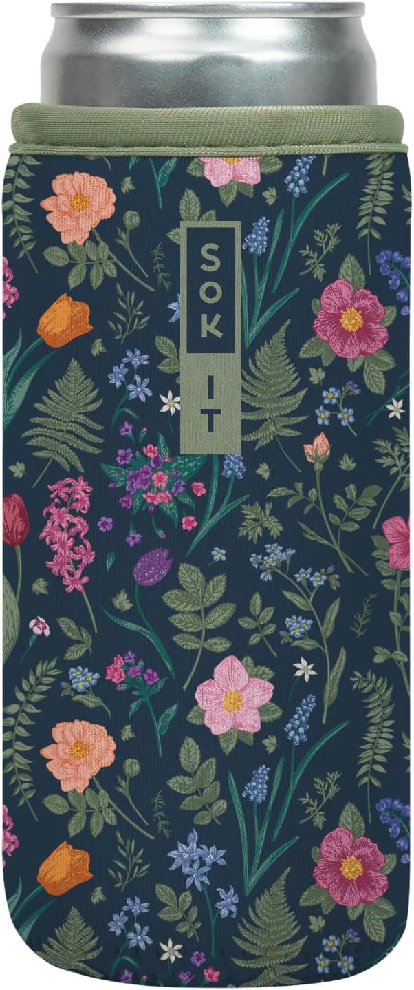 Sok It CanSok Sleeve for Beer & Soda Insulated Neoprene Cover (Spring Noir, 12oz Slim Can Sleeve)