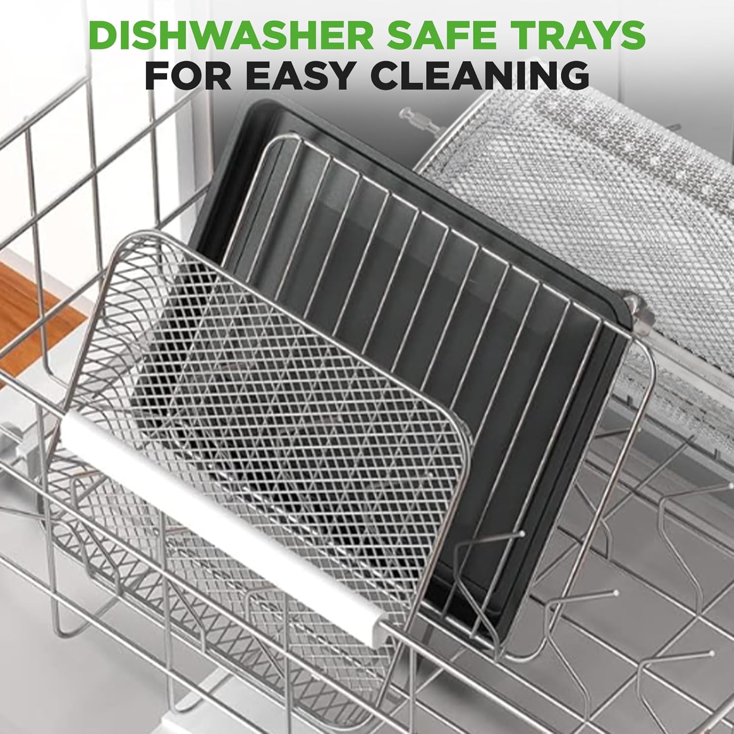 - SAFETY AND EASE OF USE - Prioritize safety and convenience. The automatic shut-off function and overheat protection guarantee worry-free operation. Enjoy hassle-free cleaning with the non-stick surfaces, removable basket, and dishwasher-safe tray.