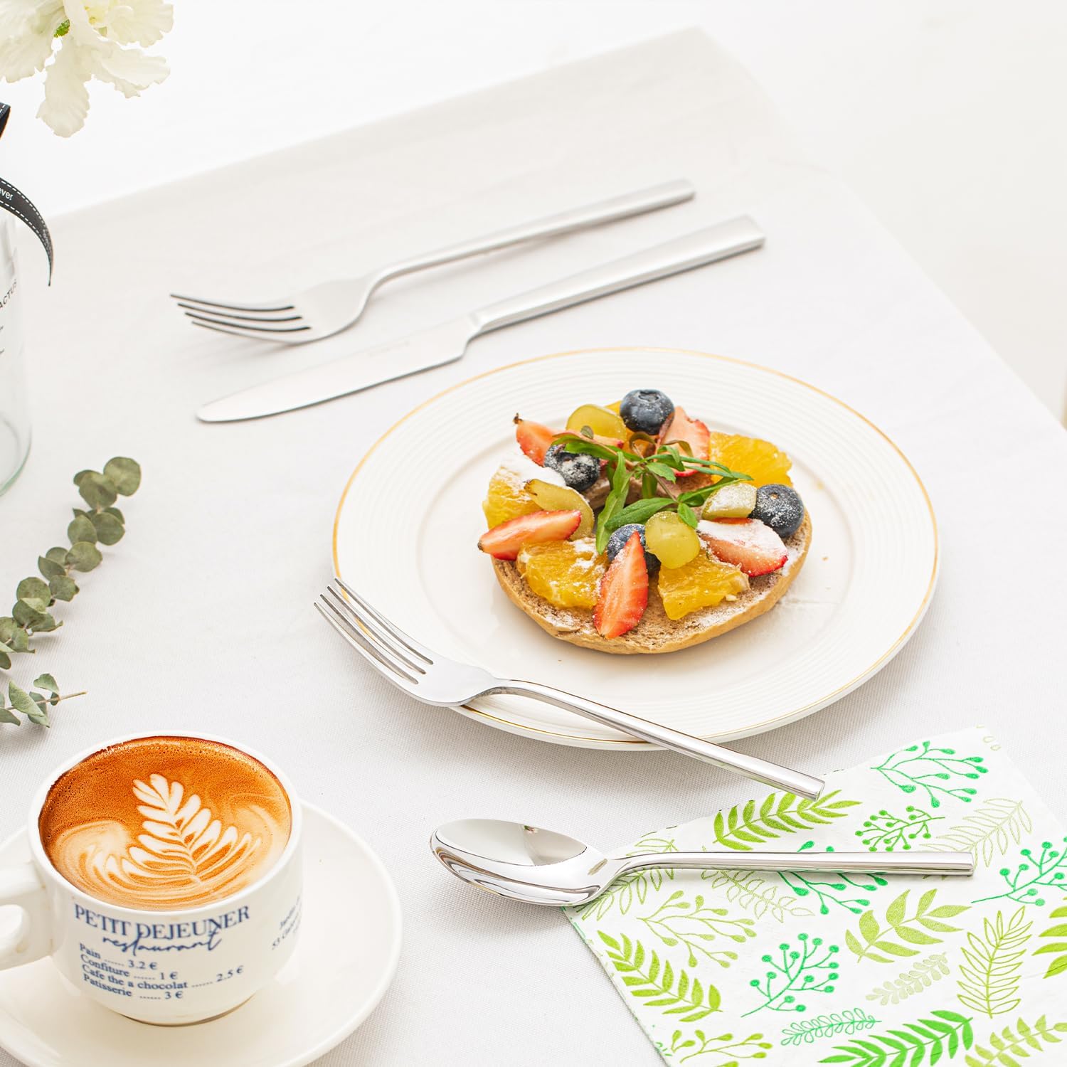 - DESIGN AND APPEARANCE: Mirror finish, natural and elegant design.Smooth and silk surface without grain, easy to clean and care in daily use. Crafted forged process,strong and durable,so that the flatware set has a thicker texture
