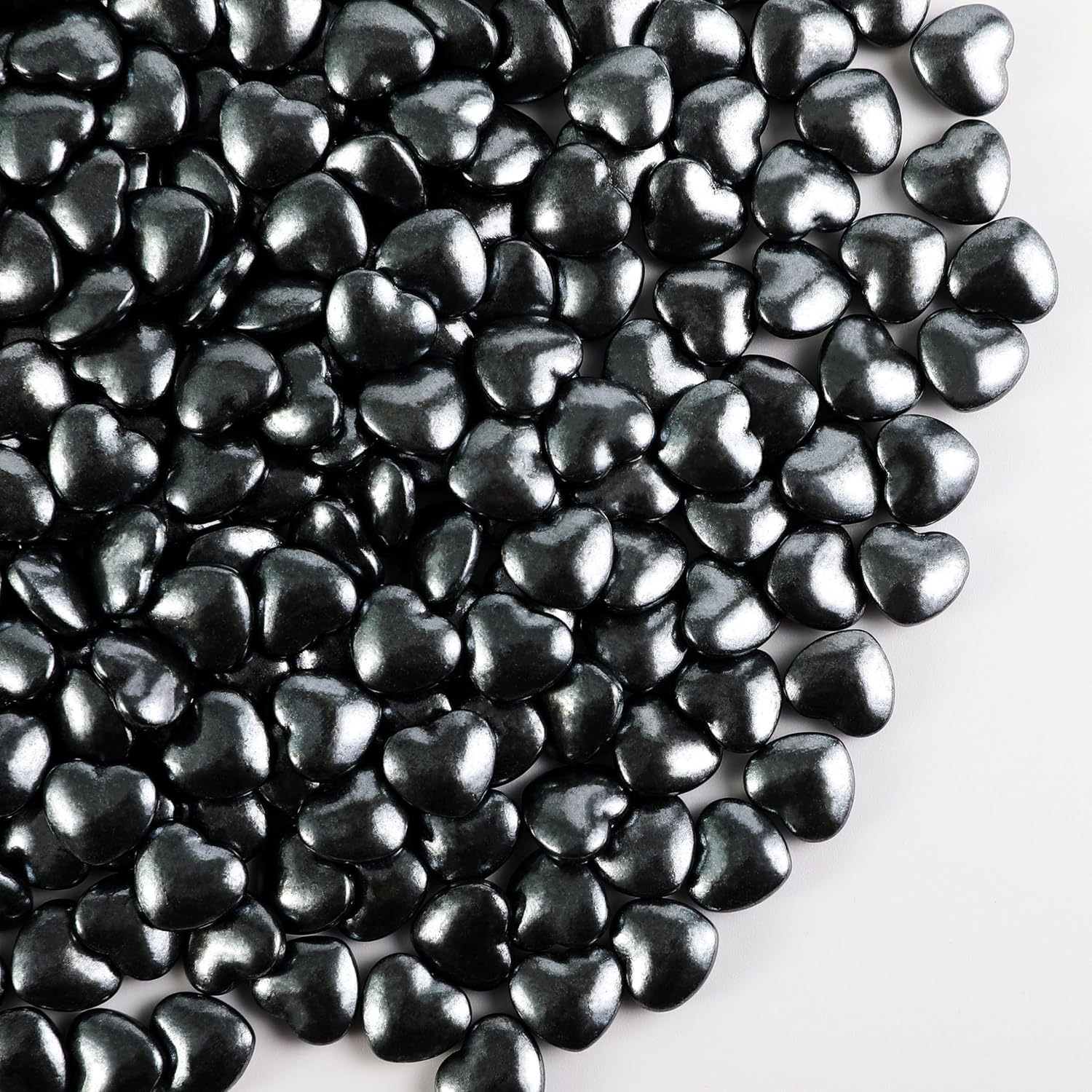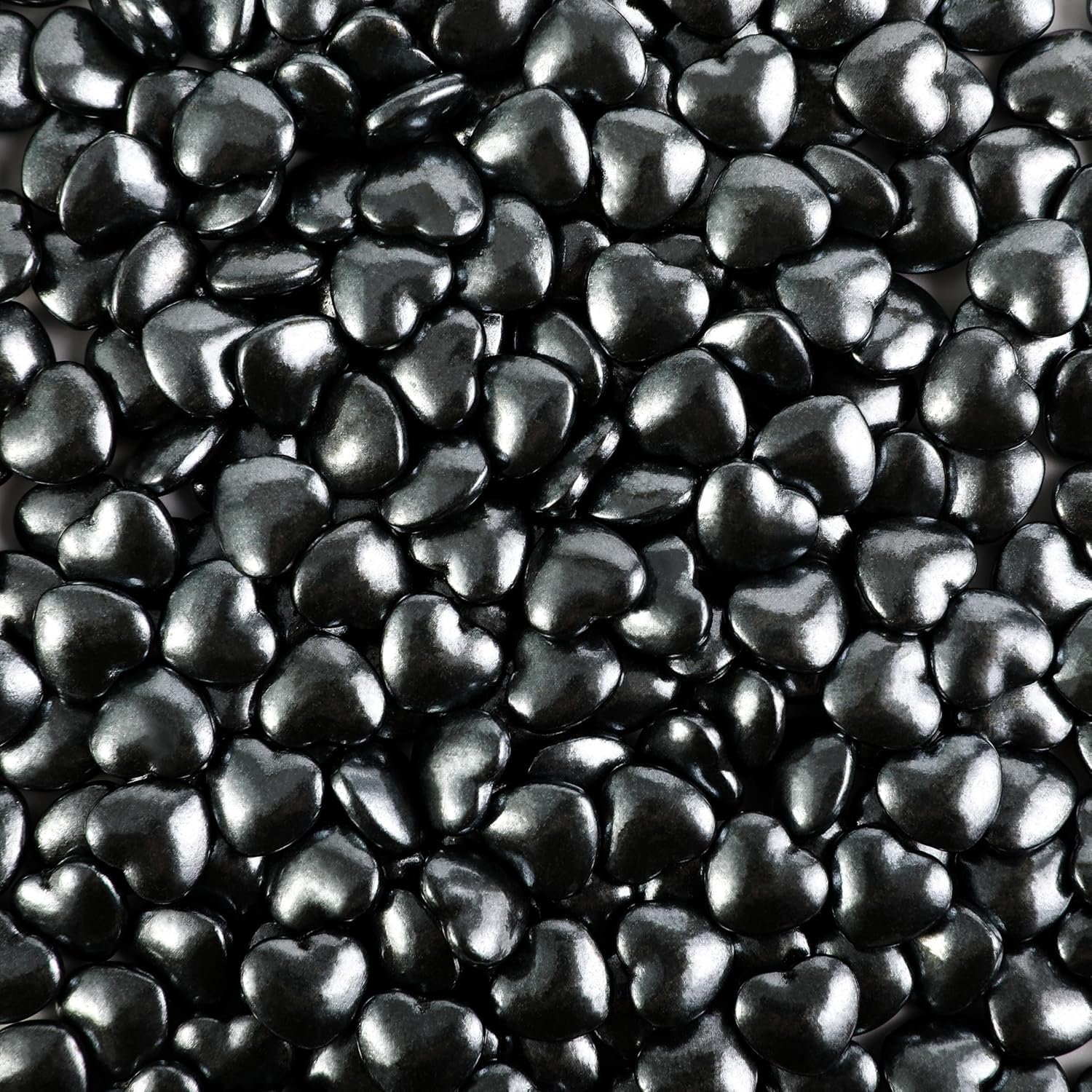 Kasvan Black Heart Shapes Sprinkles - Edible Candy Pearls 130g/4.58 Oz, Mix Size, Baking Cake Decorations, Ice Cream Toppings and Cookie Decorating, Wedding Party Chirstmas Supplies (Black)