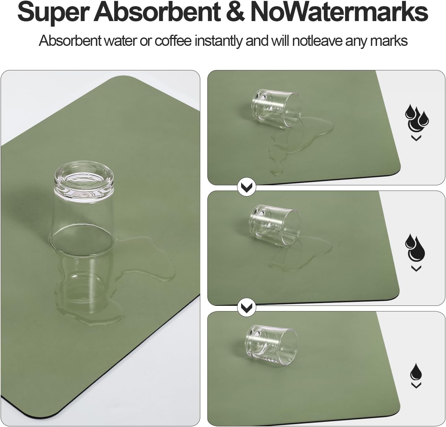 - 【Fast Drying】 The coffee mat features highly absorbent nano-material, allowing it to air-dry within seconds and keeping your countertop neat at all times.