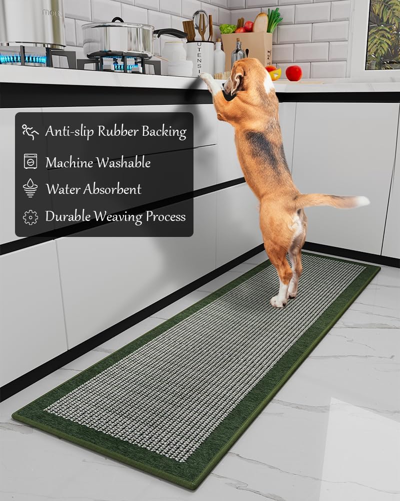 PADOOR Kitchen Mats for Floor, Kitchen Rugs Non Slip Washable, Rubber Backed Kitchen Runner Super Absorbent Kitchen Floor Mat Sink Rug, 20"x32" Green