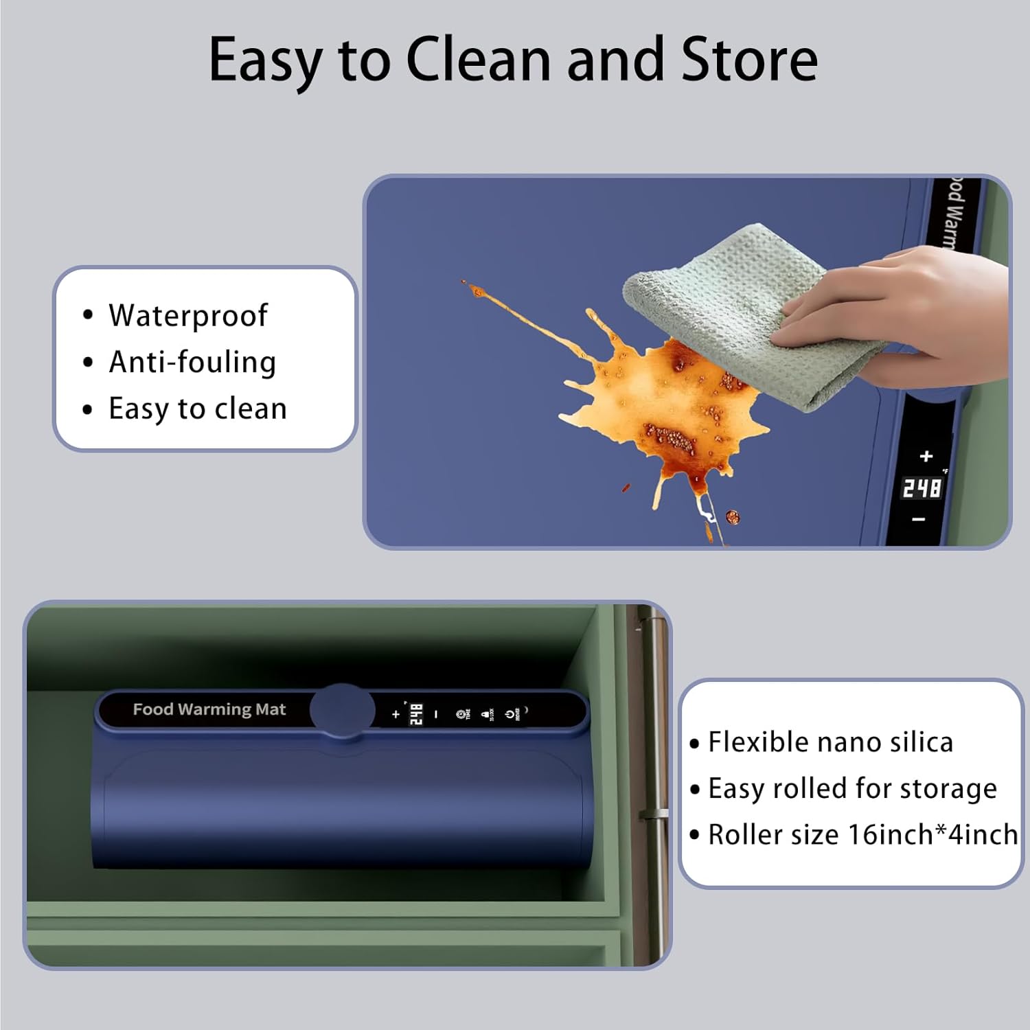 Warming Mat for Food, Rollable Electric Warming Trays for Food with 9 Temperature Settings, Heating Fastly in 10S, Food Warmer Using for Buffets Party and Home Daily, Blue